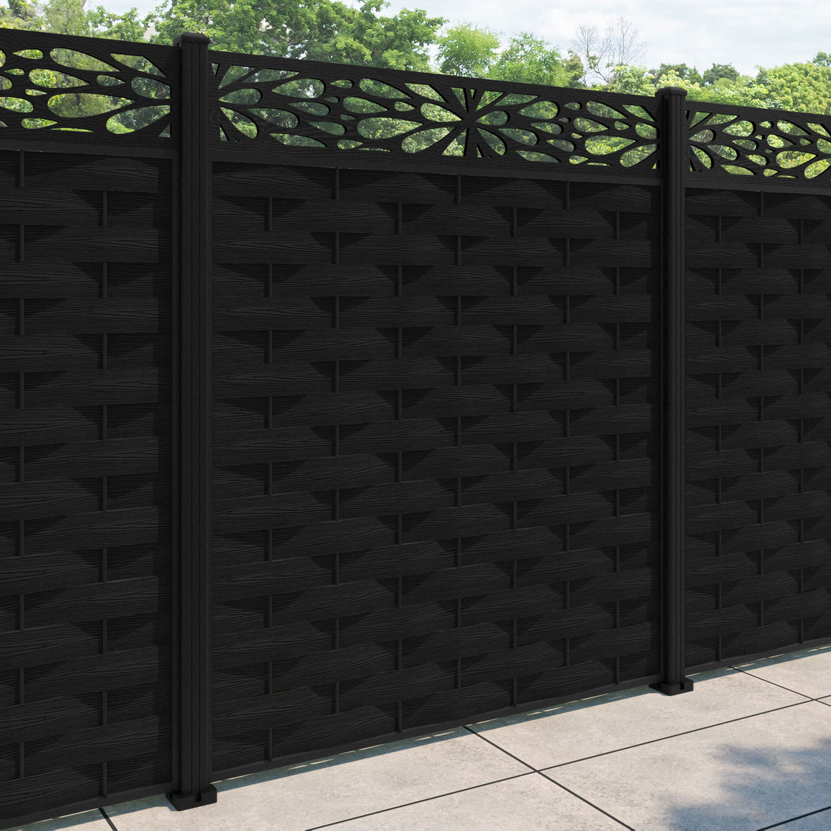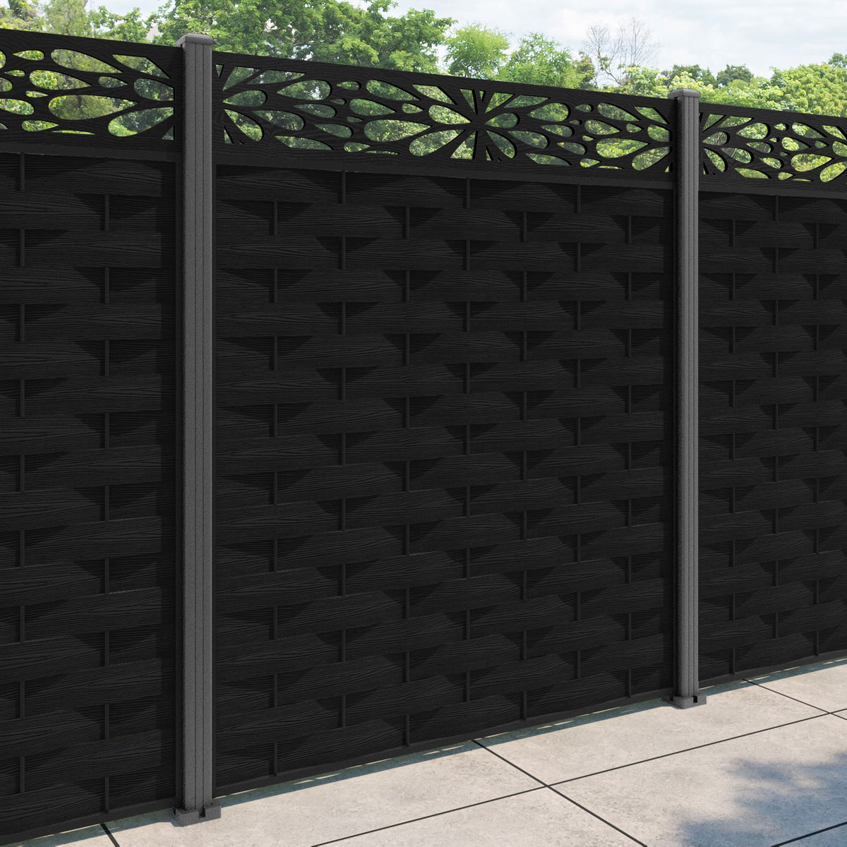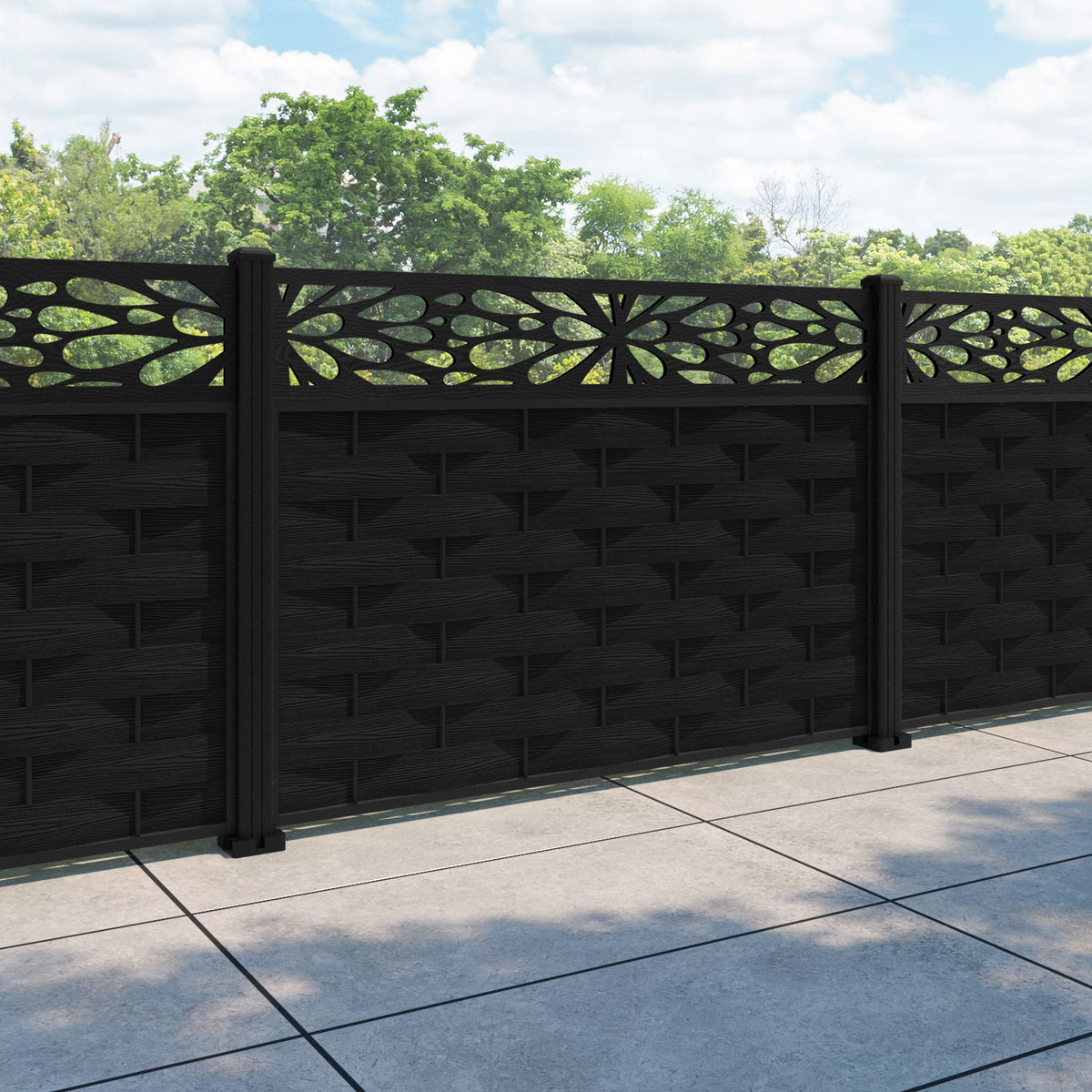 Ripple Blossom Fence Panel Black - with our aluminium posts