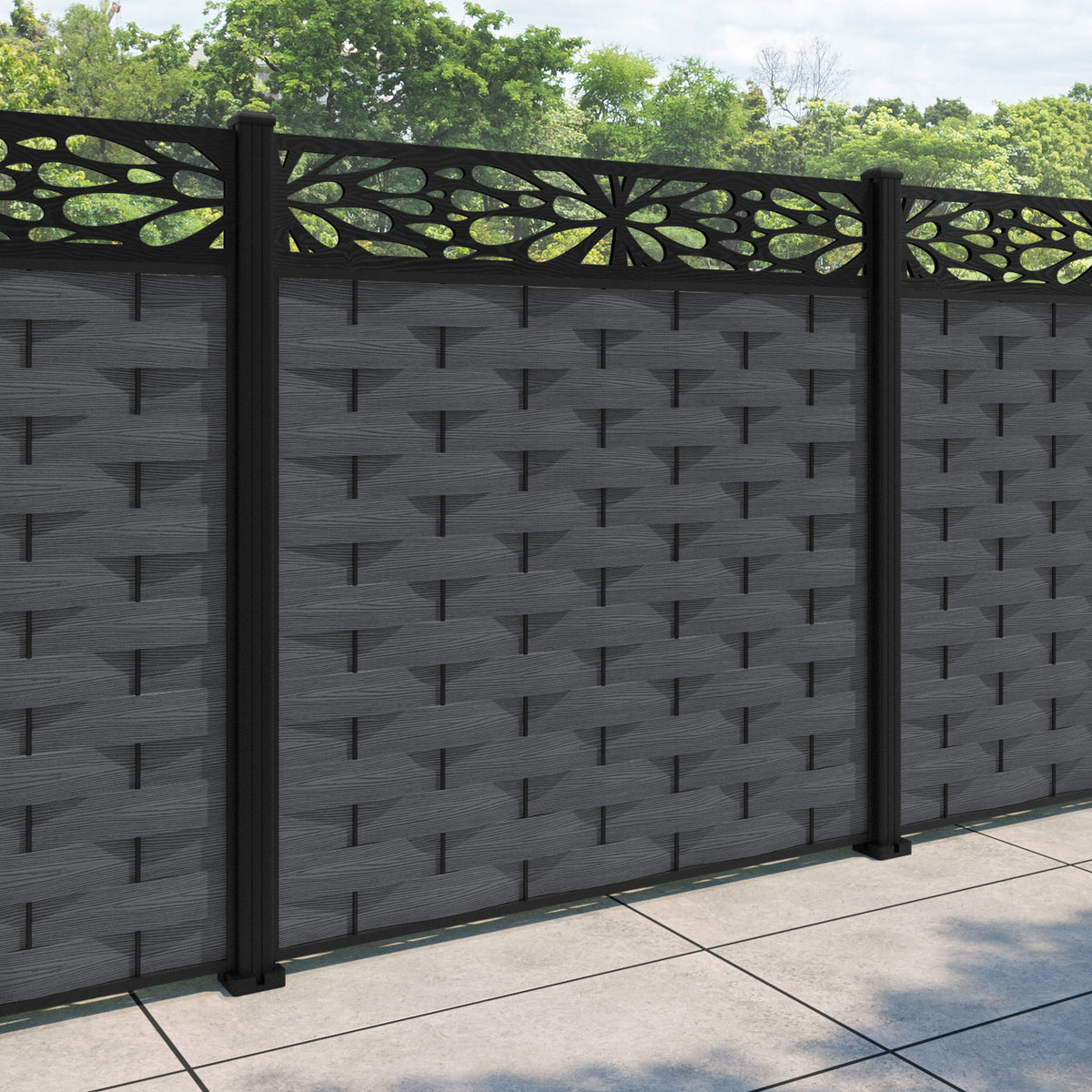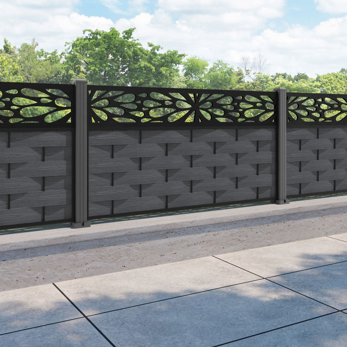 Ripple Blossom Fence Panel Dark Grey - with our aluminium posts