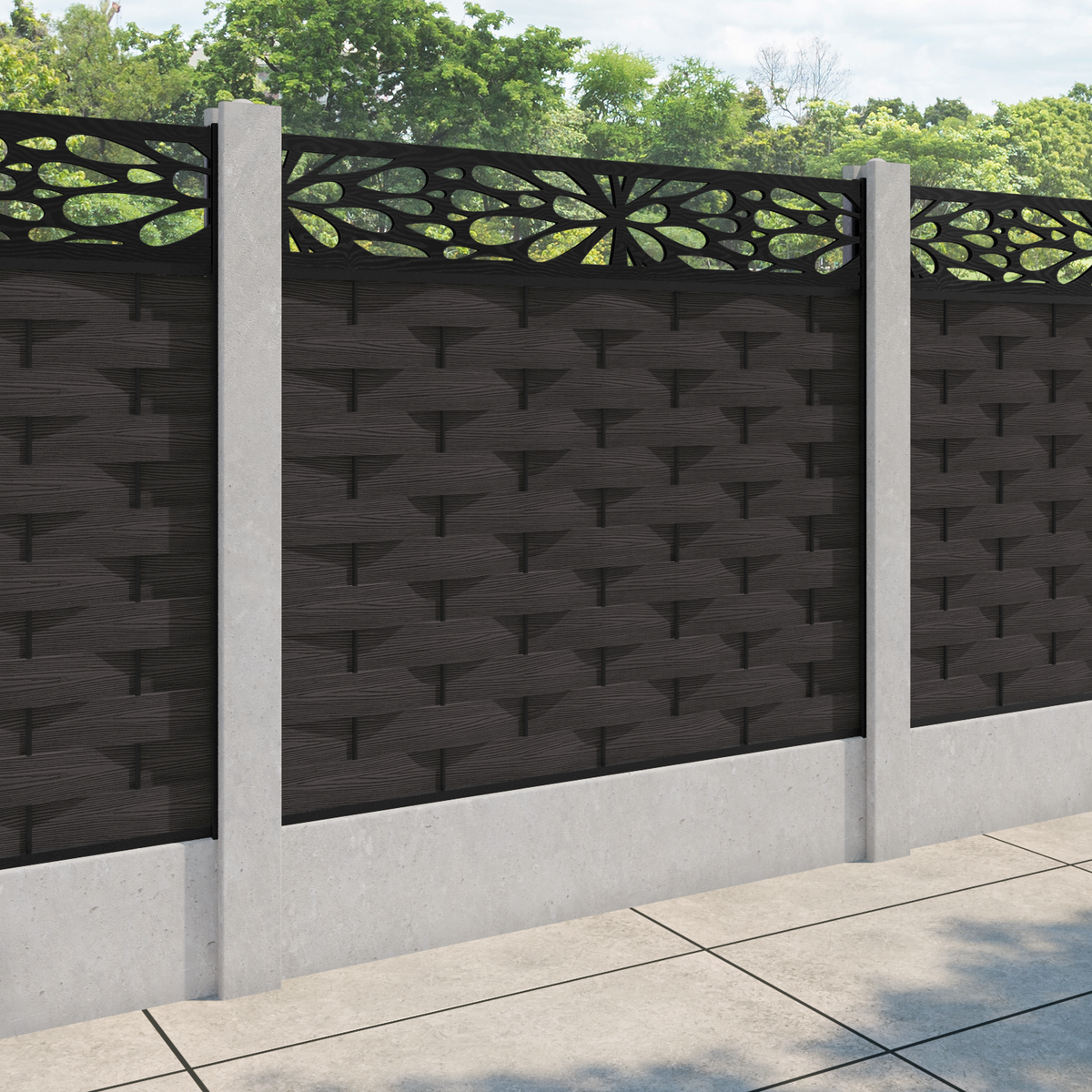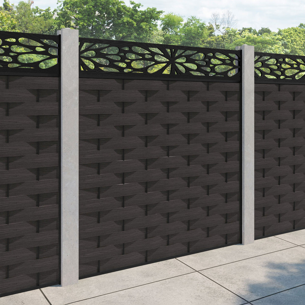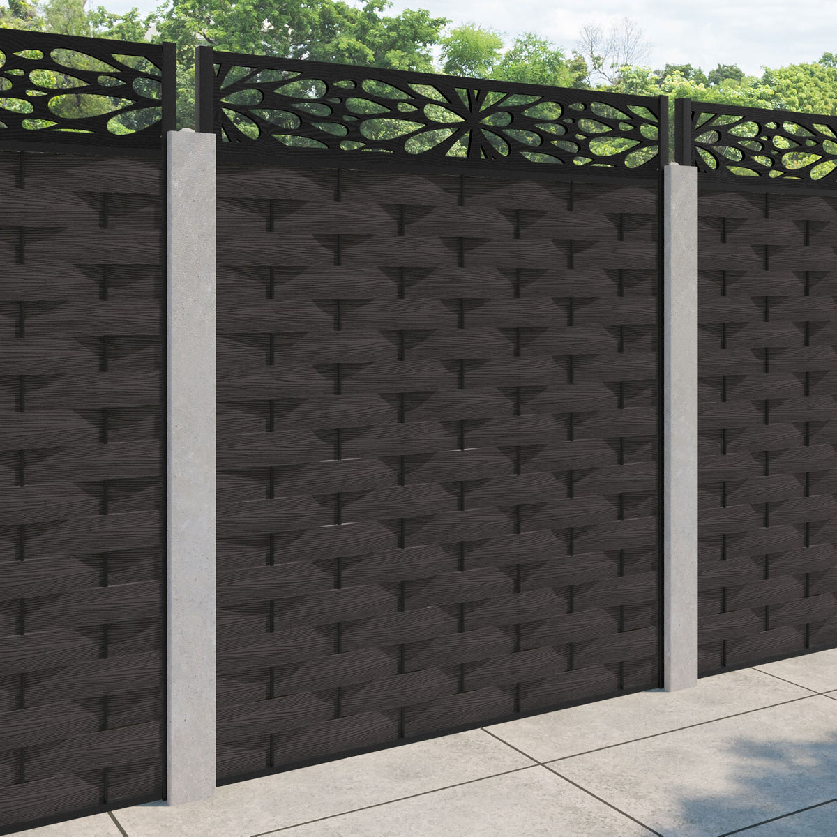 Ripple Blossom Fence Panel Dark Oak - for existing concrete posts
