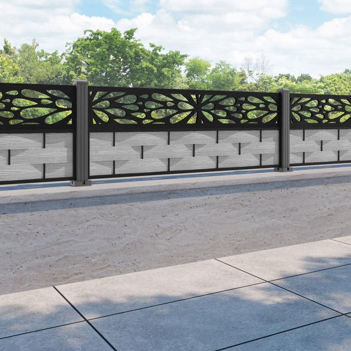 Ripple Blossom Fence Panel Light Grey - with our aluminium posts