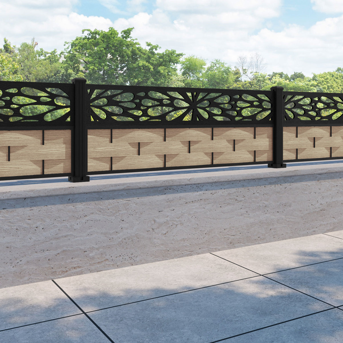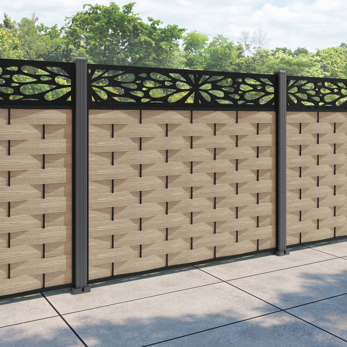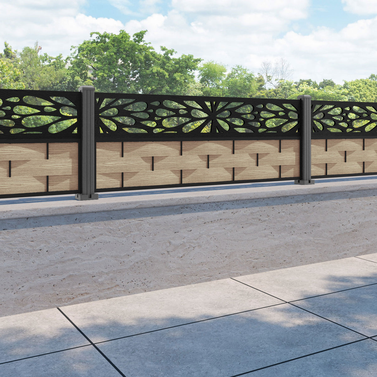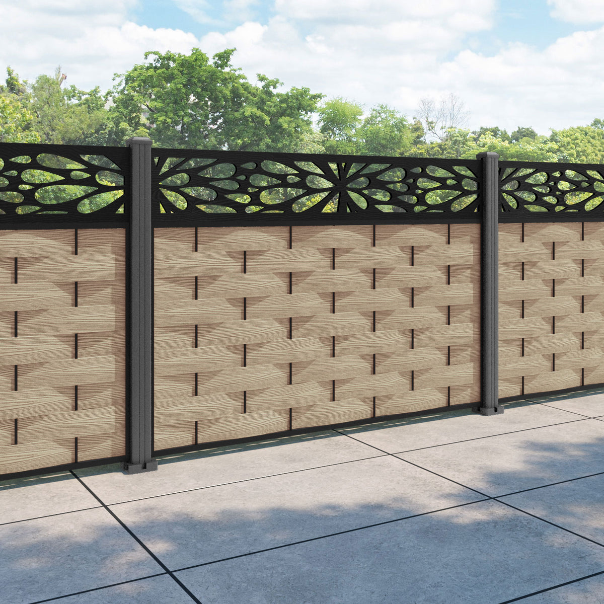 Ripple Blossom Fence Panel Light Oak - with our aluminium posts