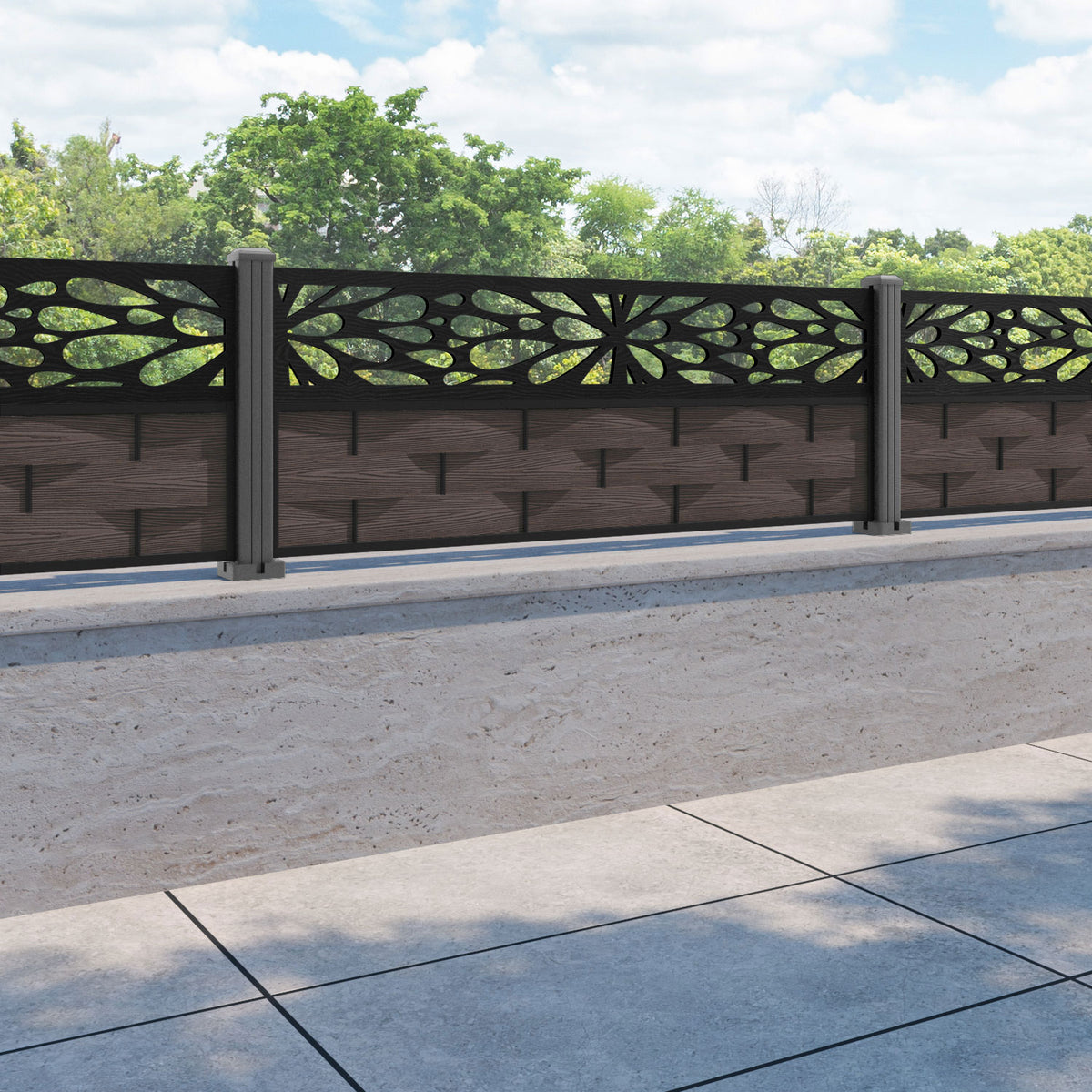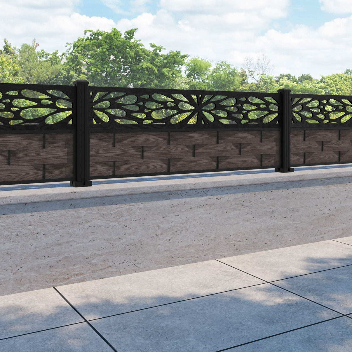 Ripple Blossom Fence Panel Mid Brown - with our aluminium posts