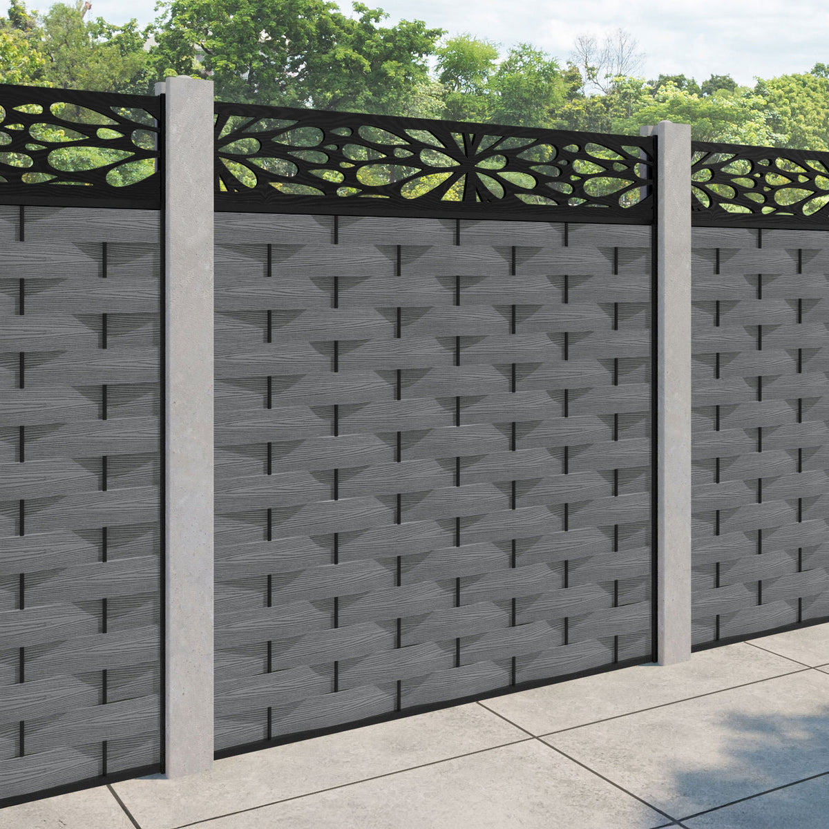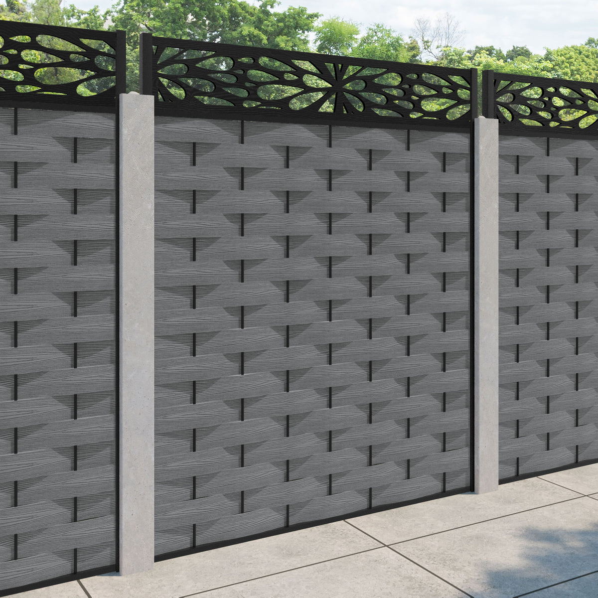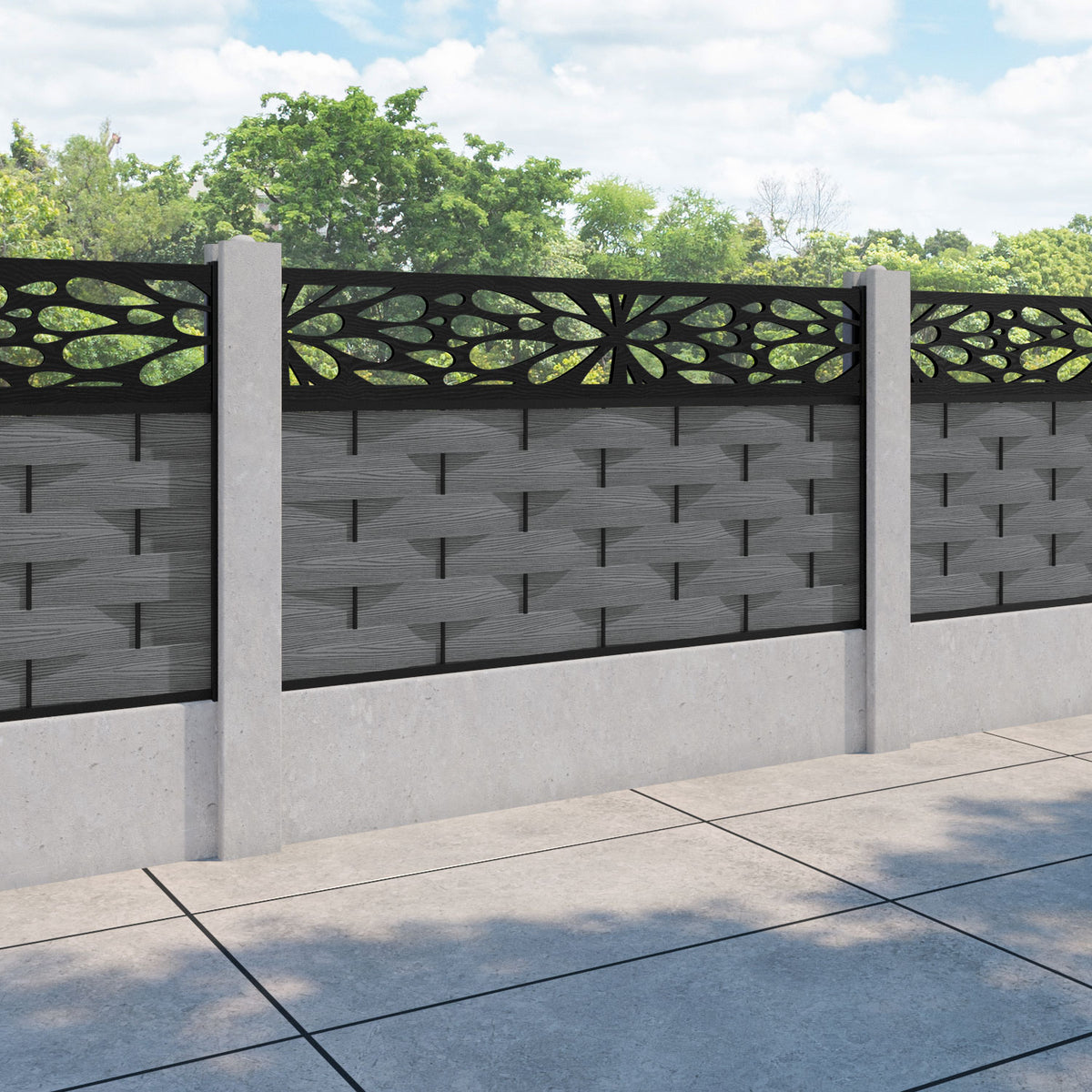 Ripple Blossom Fence Panel Mid Grey - for existing concrete posts