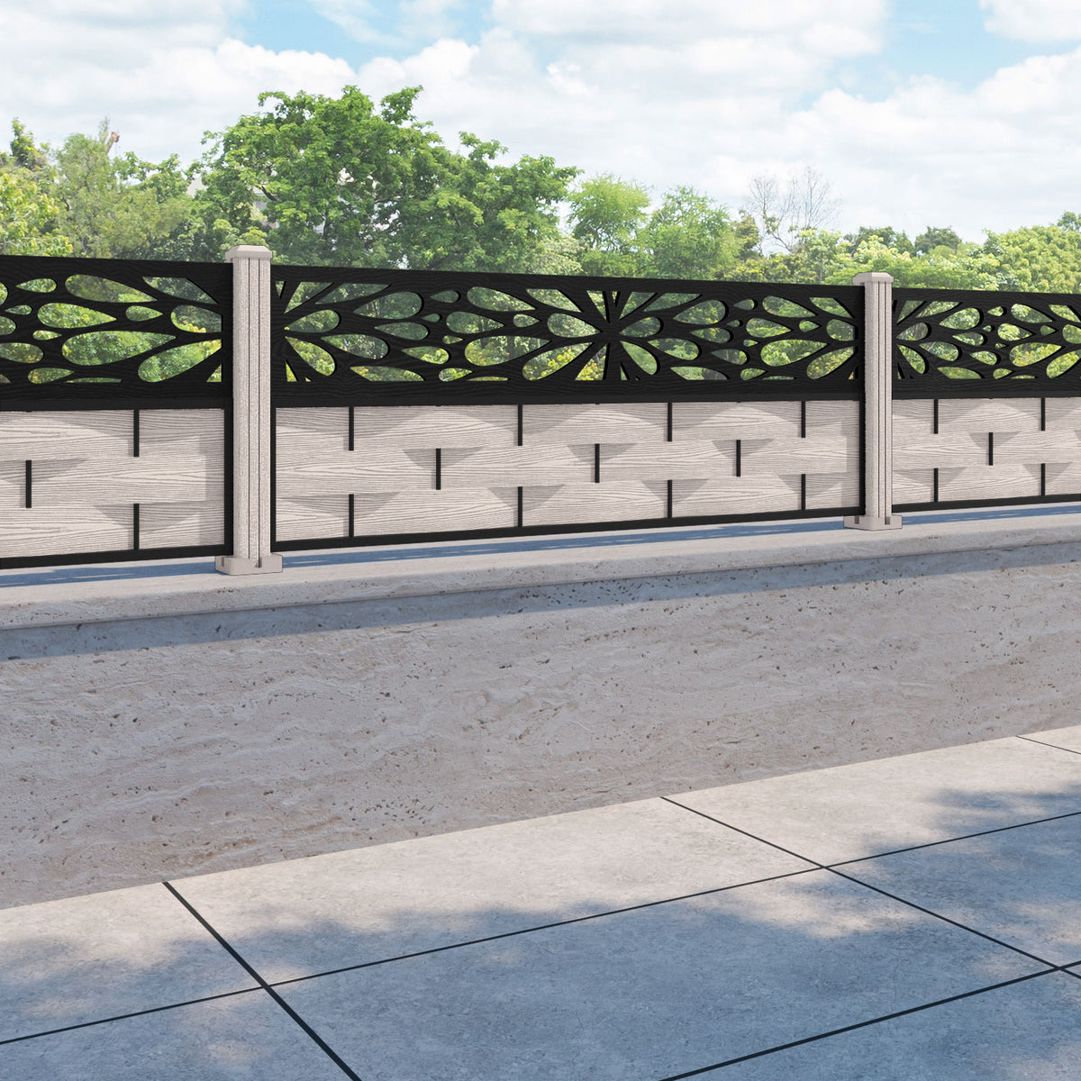Ripple Blossom Fence Panel Mid Stone - with our composite posts