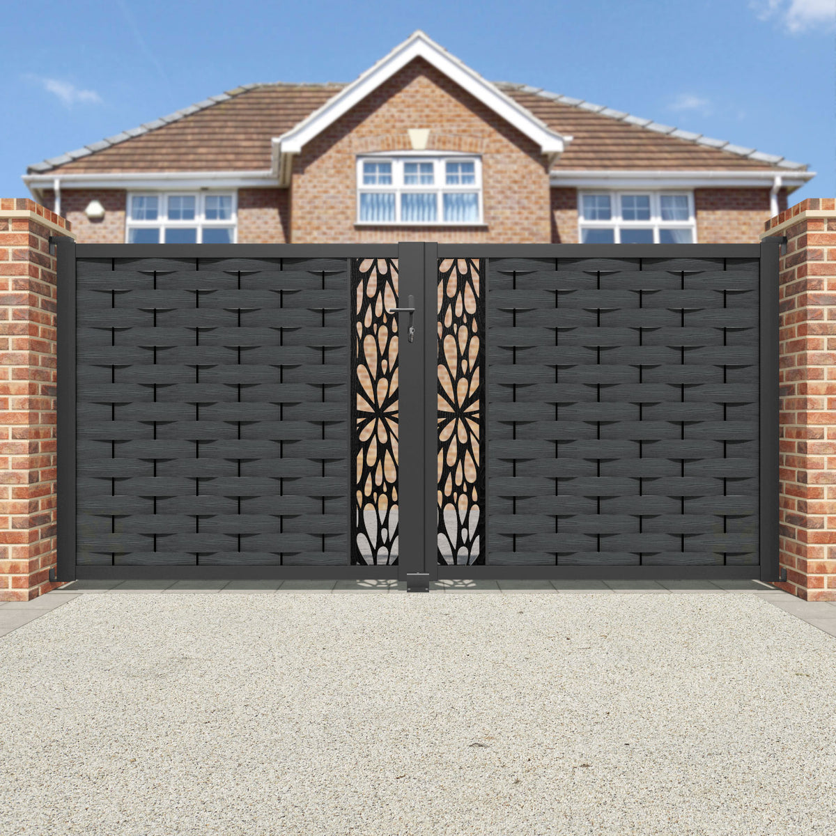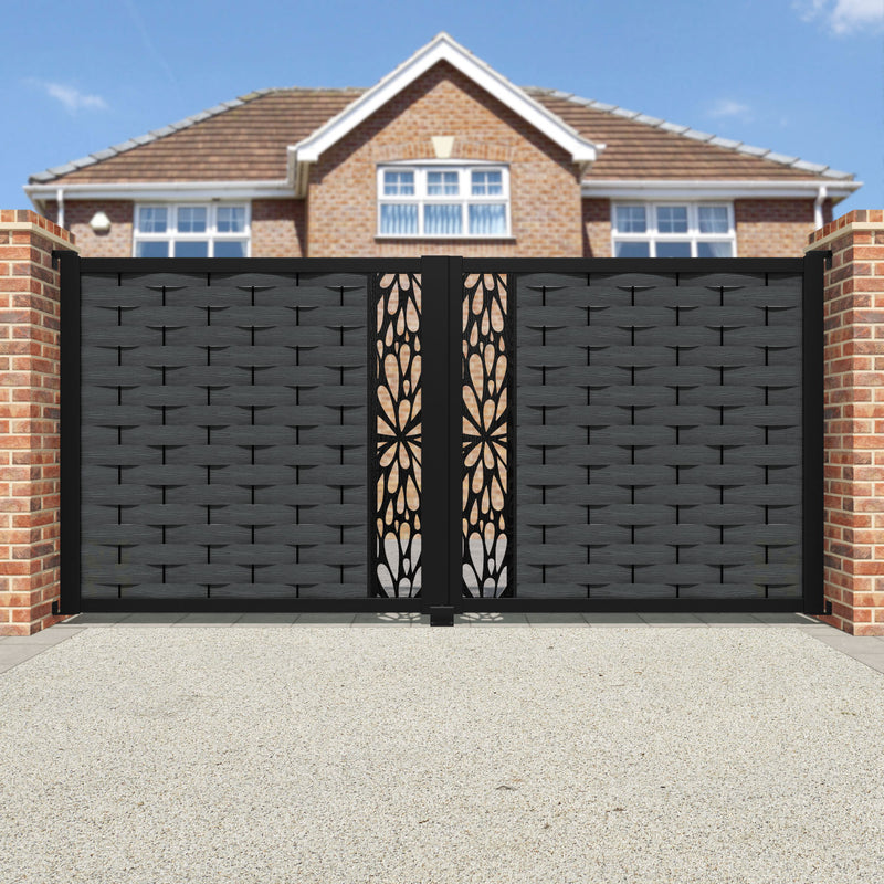 Ripple Blossom Straight Top Driveway Gate Dark Grey - Middle Screen