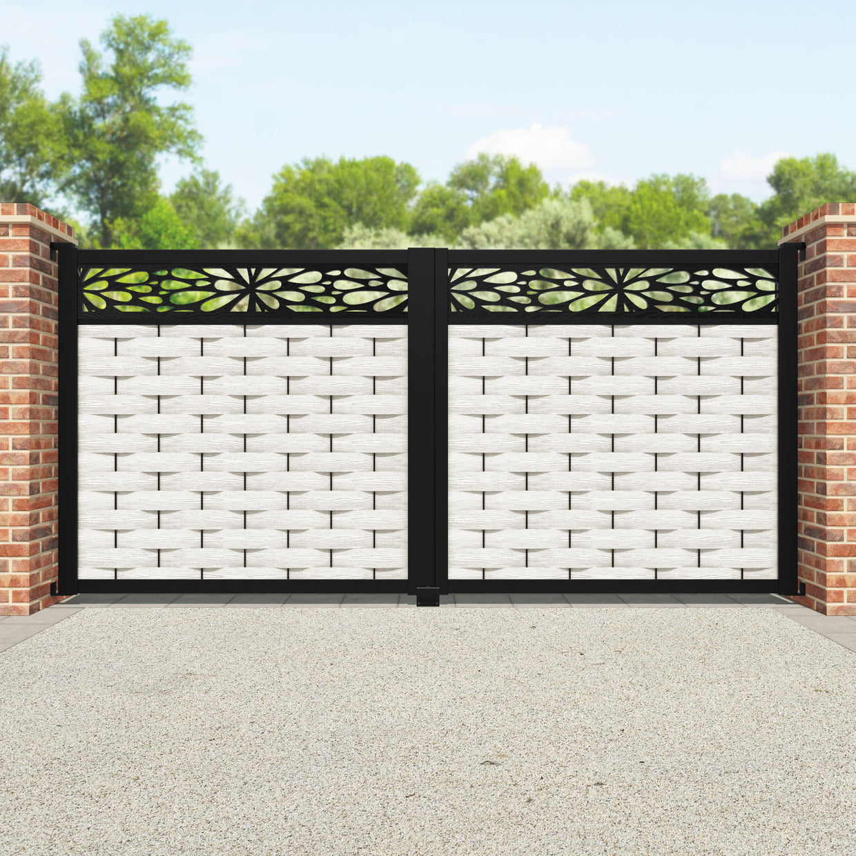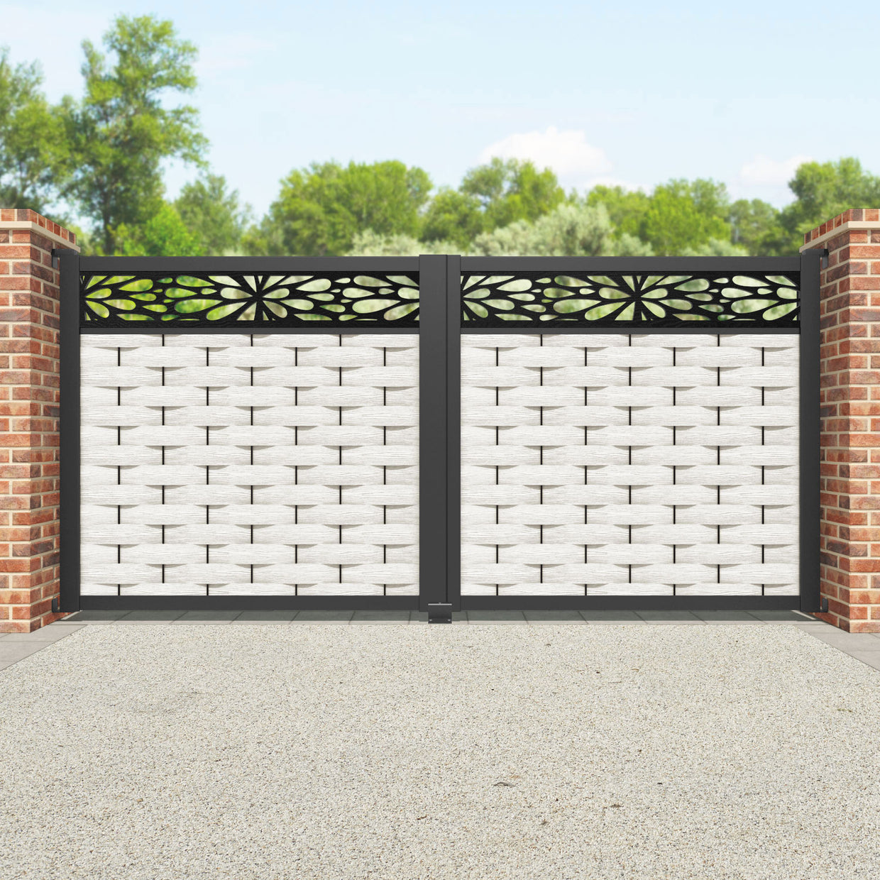 Ripple Blossom Straight Top Driveway Gate Light Stone - Top Screen
