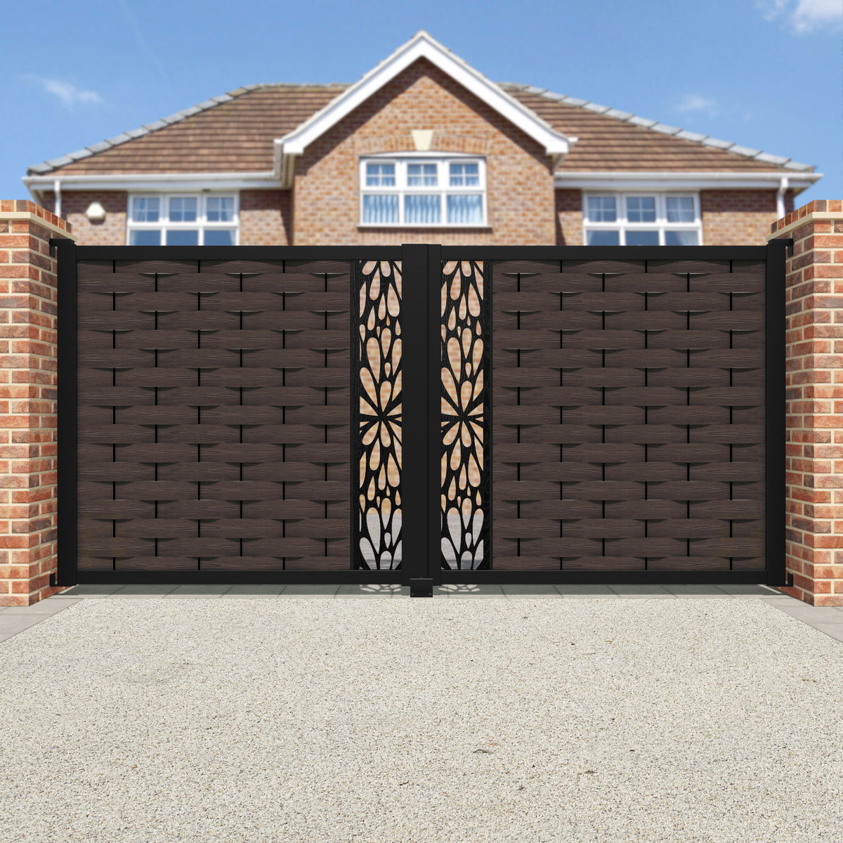 Ripple Blossom Straight Top Driveway Gate Mid Brown - Middle Screen