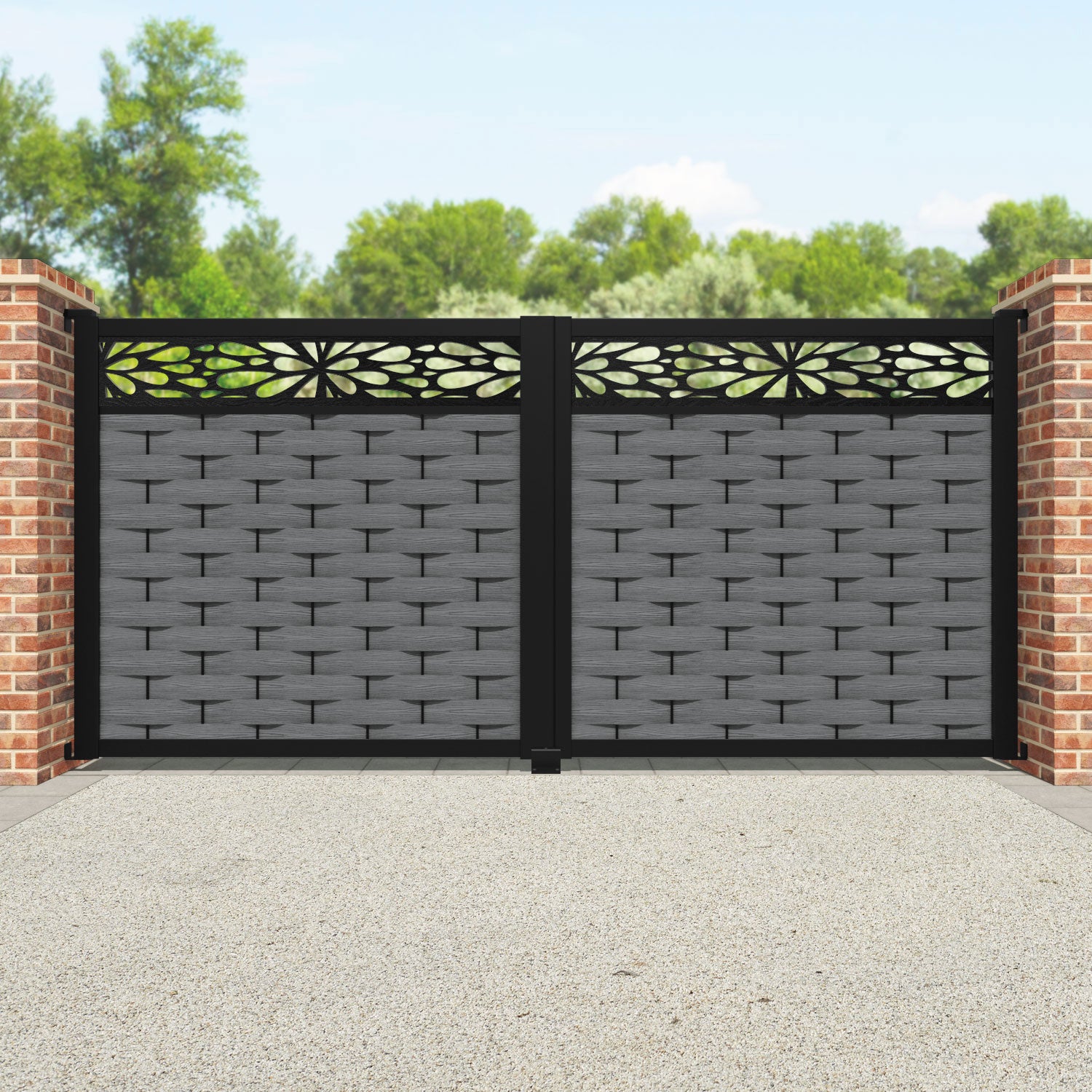 Ripple Blossom Straight Top Driveway Gate Mid Grey - Top Screen