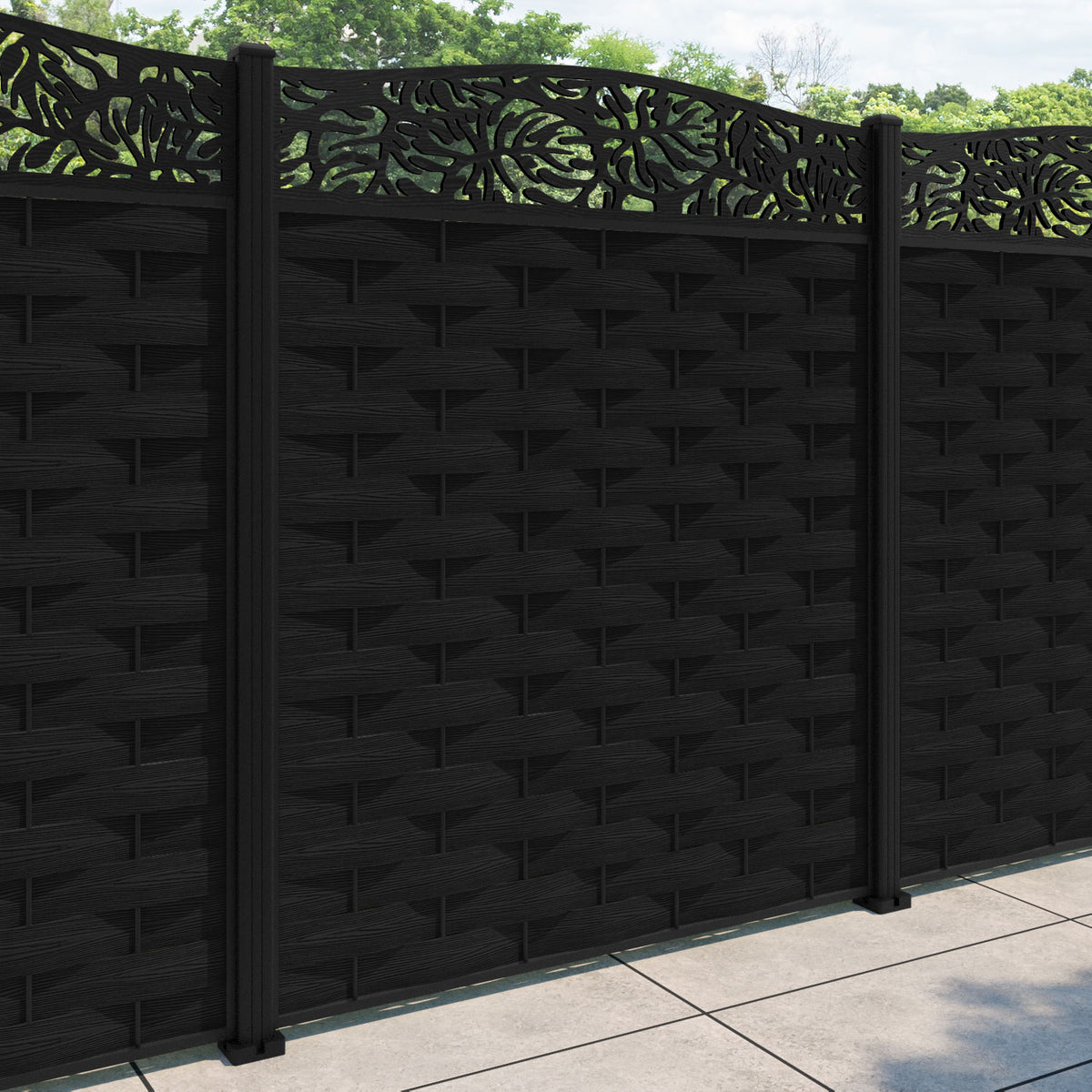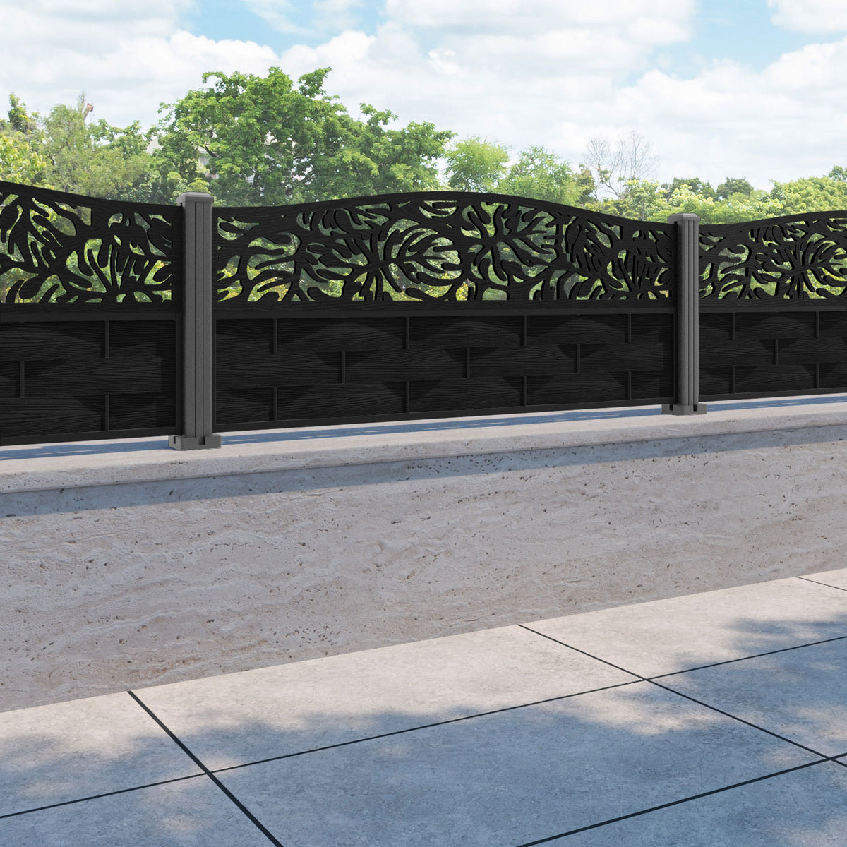 Ripple Botanic Curved Top Fence Panel Black - with our aluminium posts