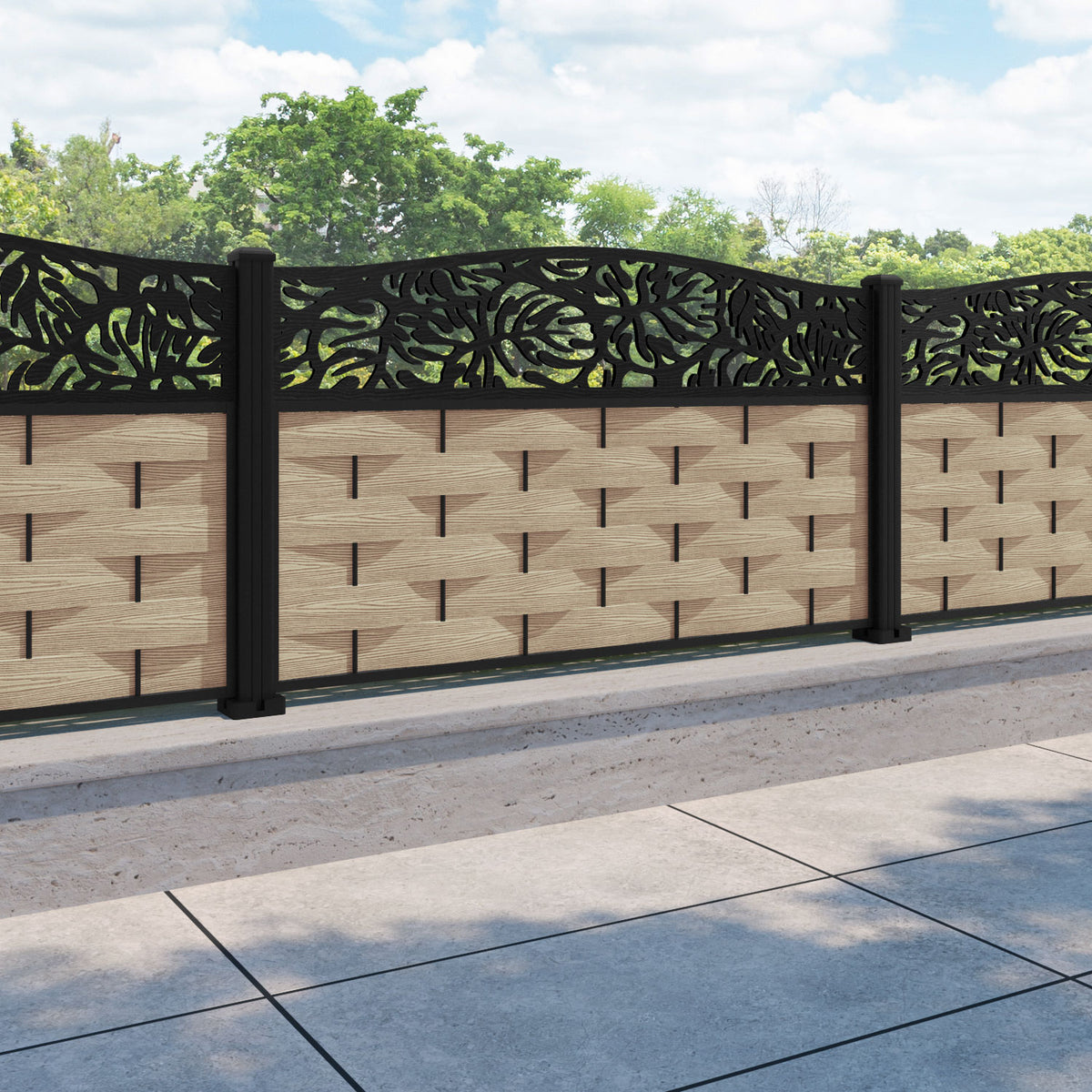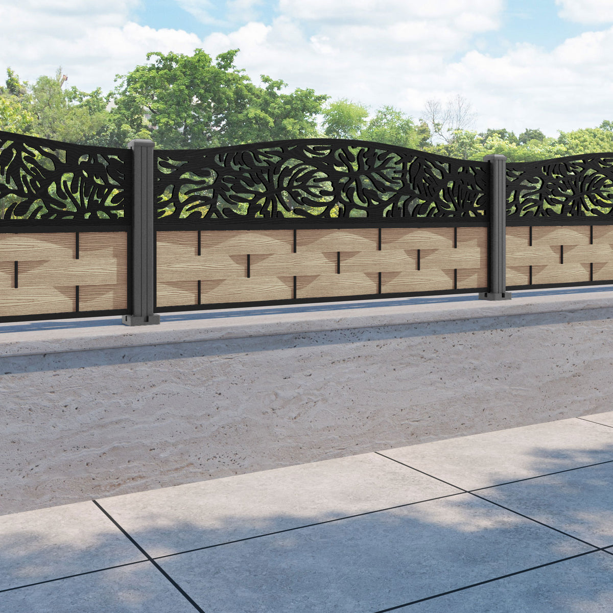 Ripple Botanic Curved Top Fence Panel Light Oak - with our aluminium posts