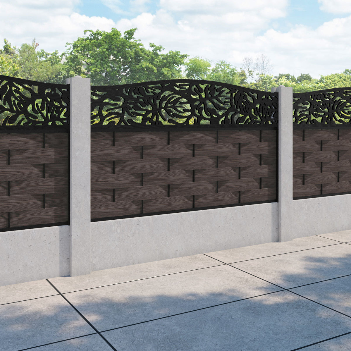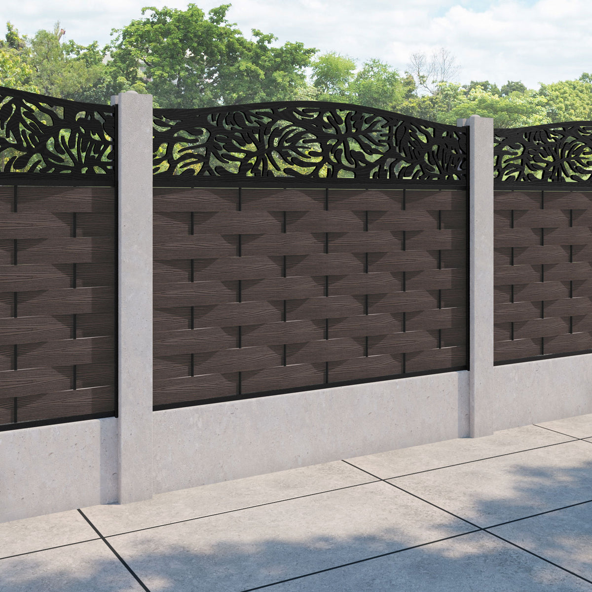 Ripple Botanic Curved Top Fence Panel Mid Brown - for existing concrete posts