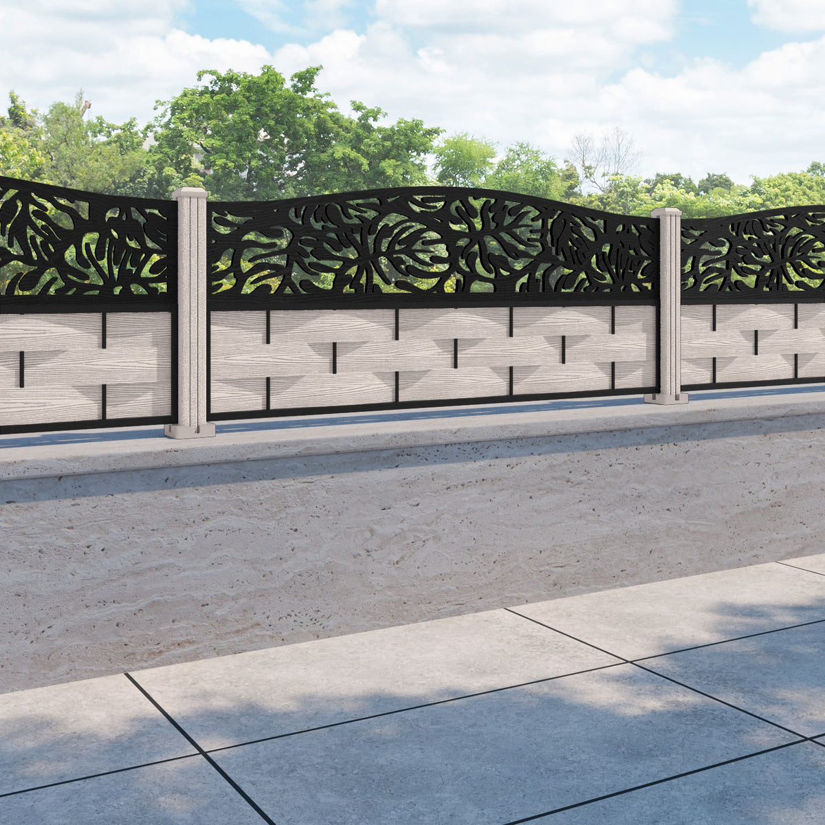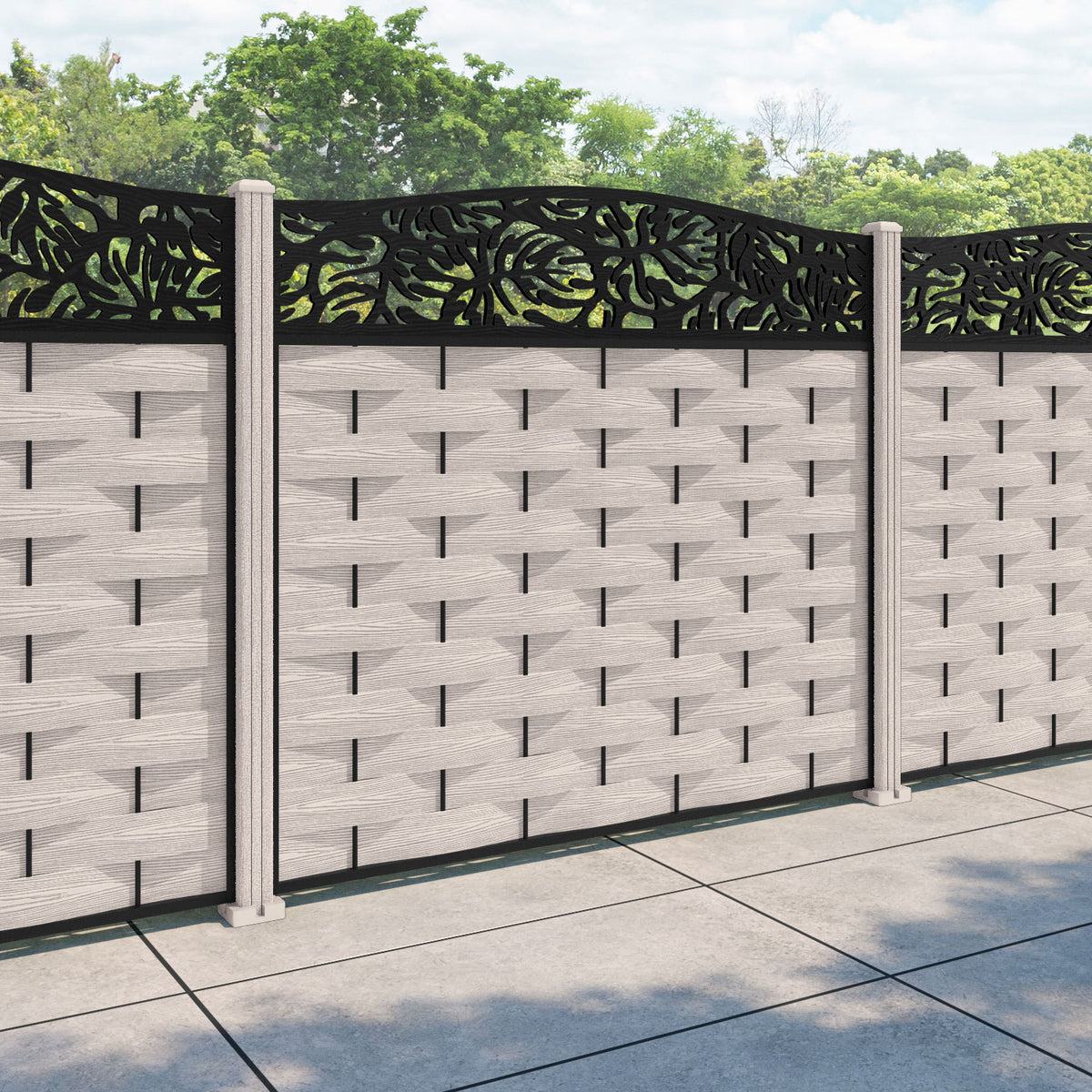 Ripple Botanic Curved Top Fence Panel Mid Stone - with our composite posts