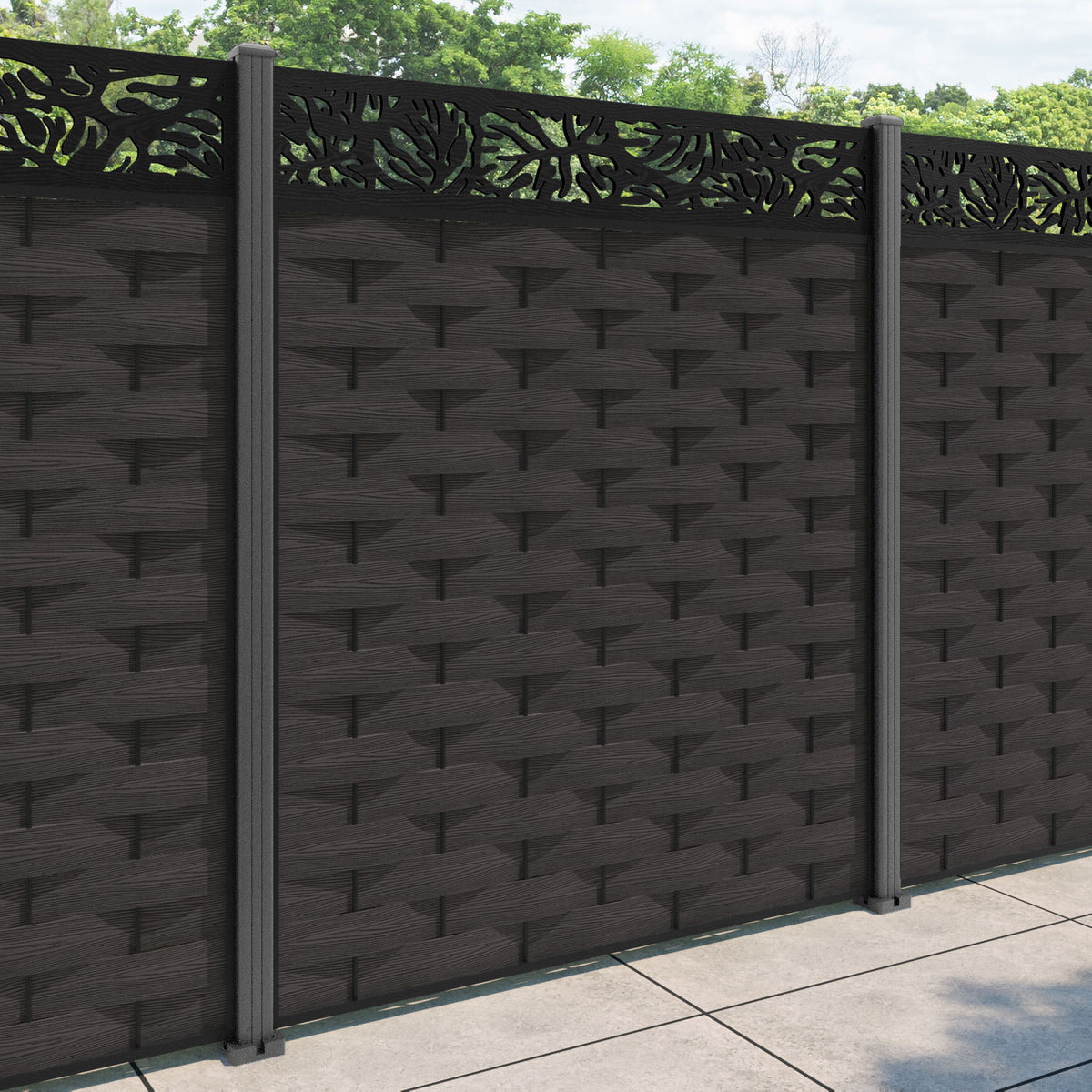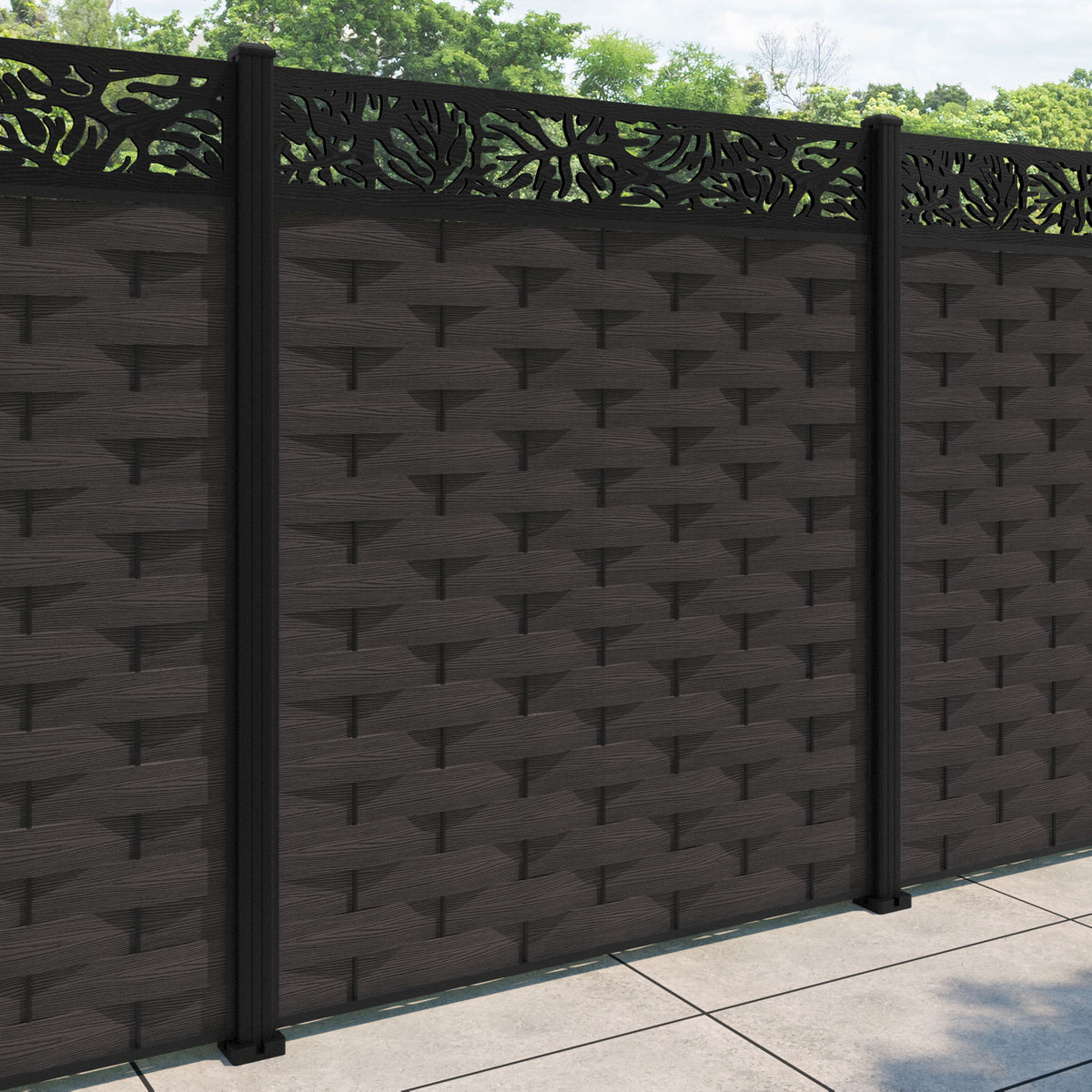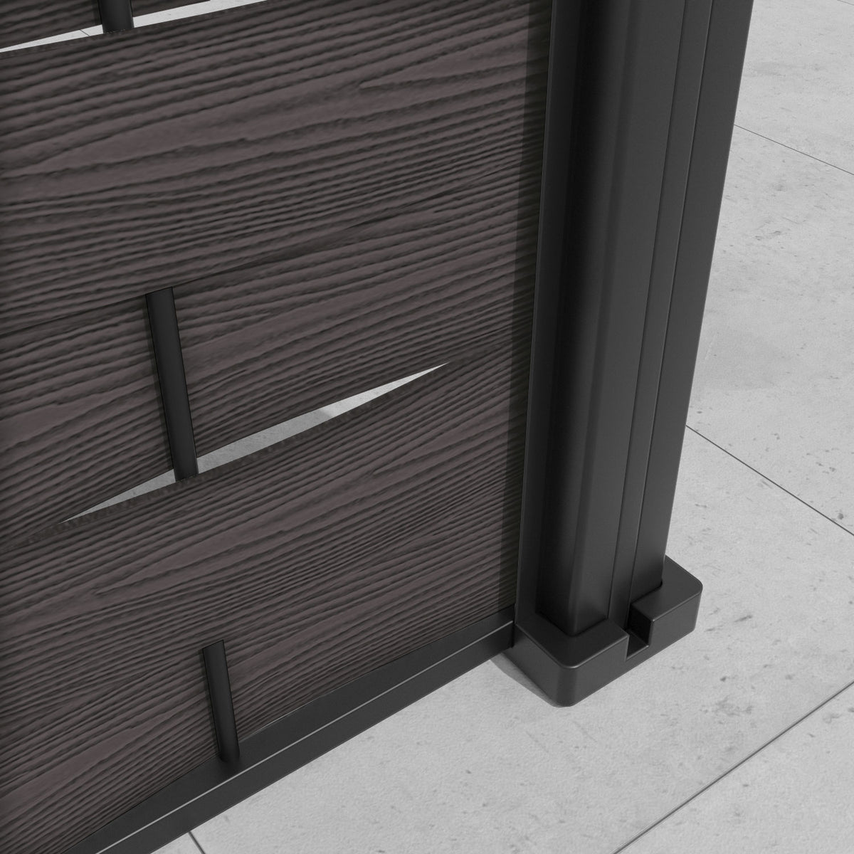 Ripple Botanic Fence Panel Dark Oak - with our aluminium posts