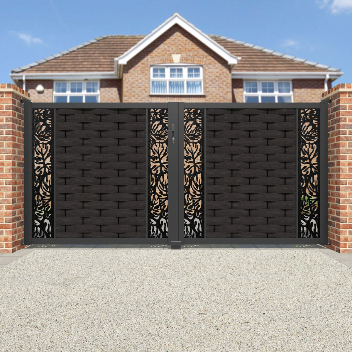 Ripple Botanic Straight Top Driveway Gate Dark Oak - Middle & End Screen