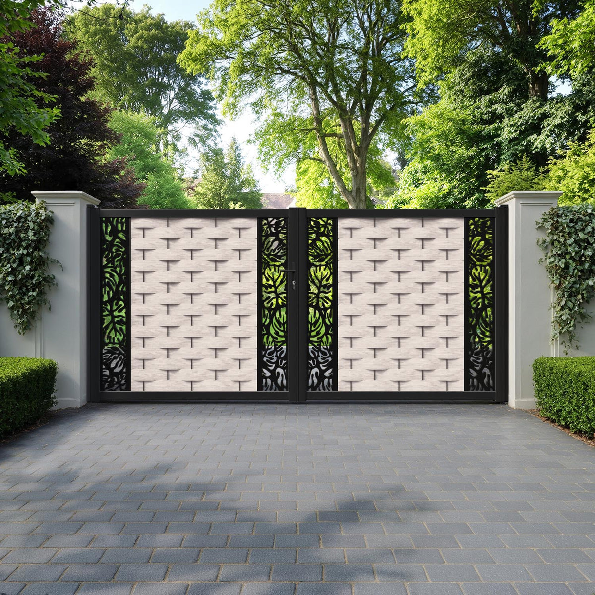 Ripple Botanic Straight Top Driveway Gate Mid Stone - Middle & End Screen
