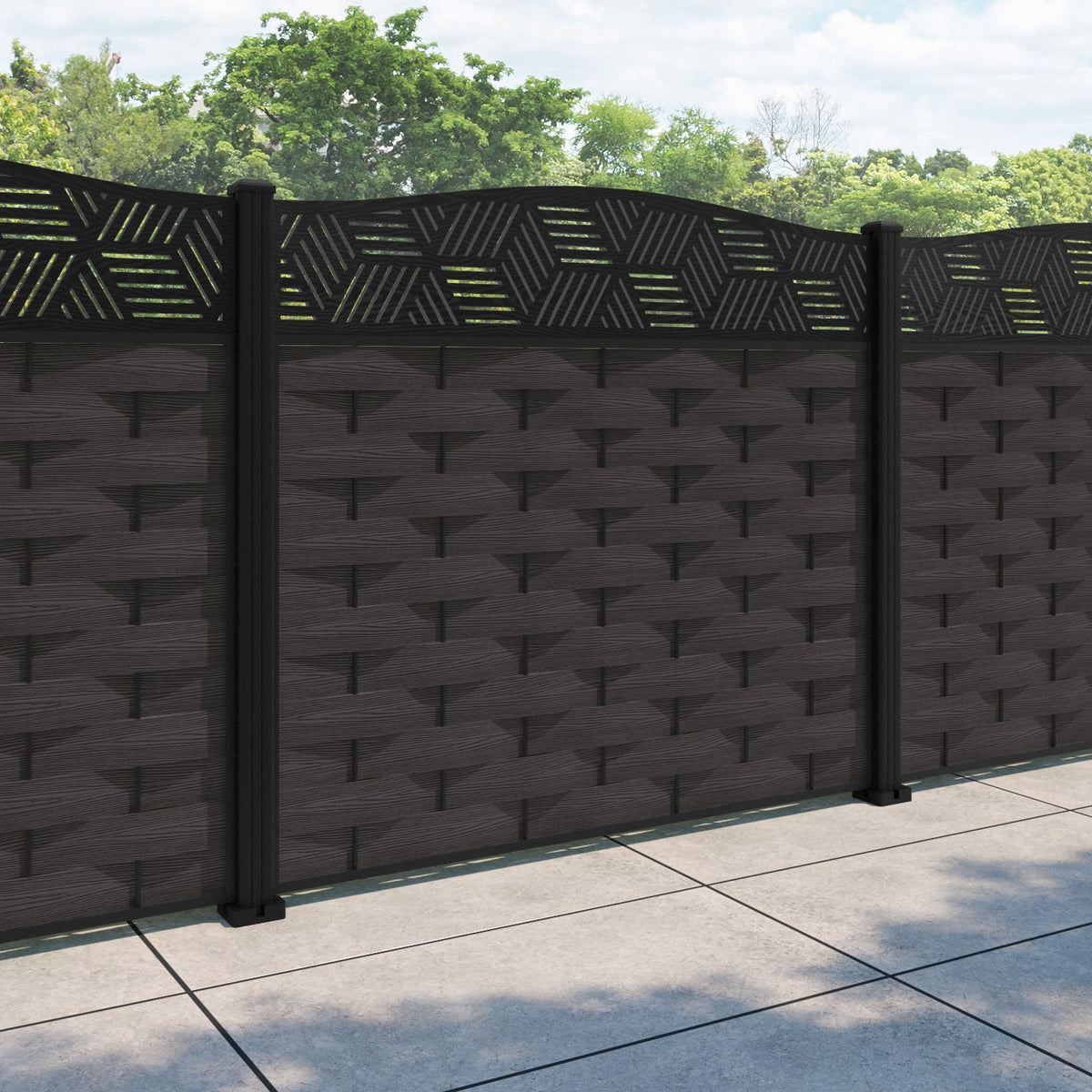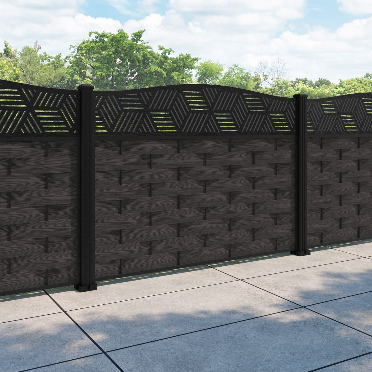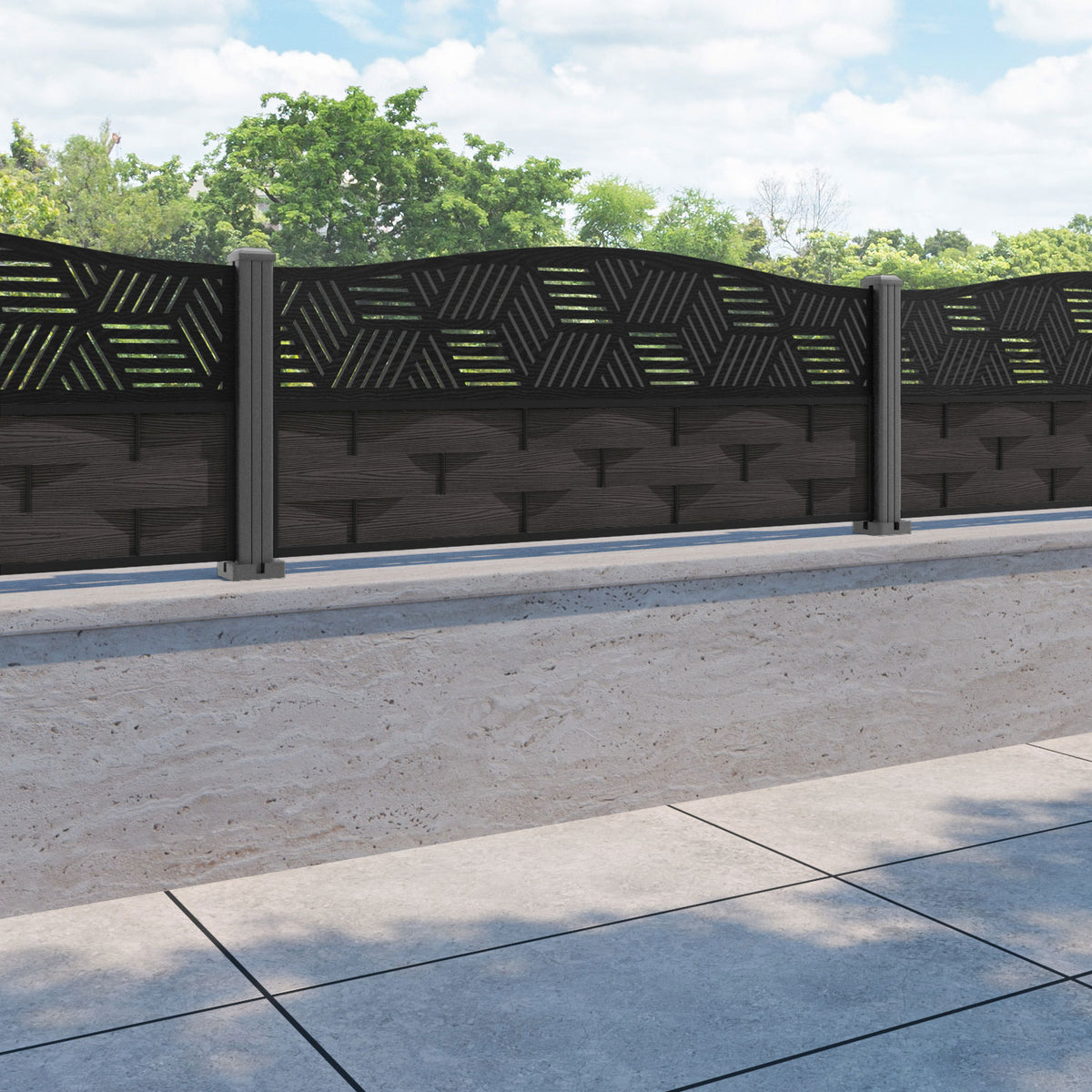 Ripple Cubed Curved Top Fence Panel Dark Oak - with our aluminium posts