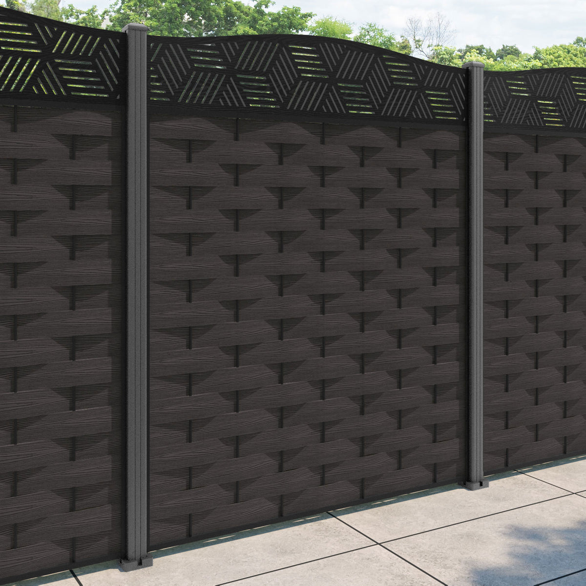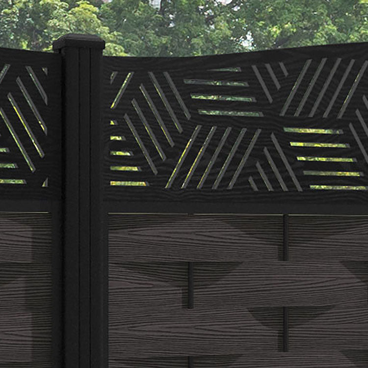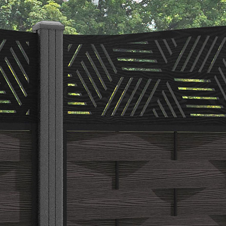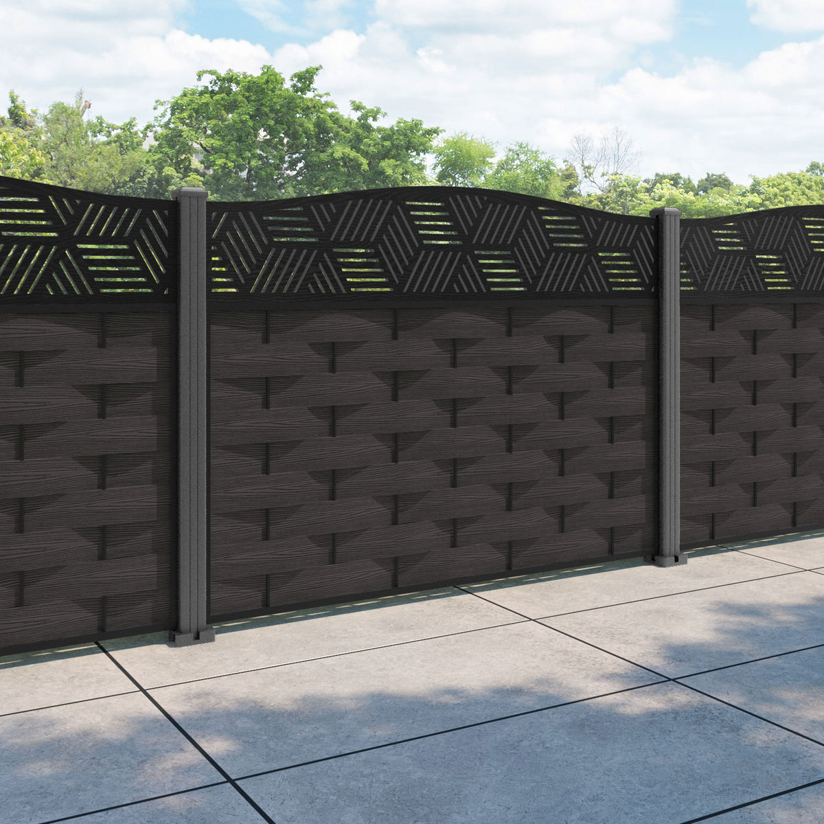 Ripple Cubed Curved Top Fence Panel Dark Oak - with our aluminium posts