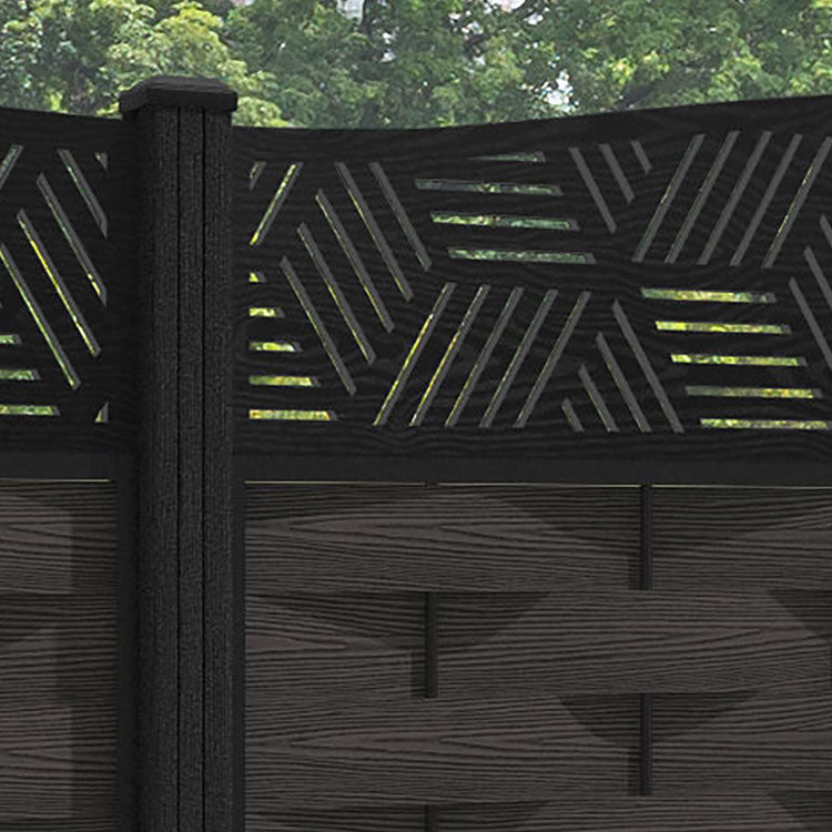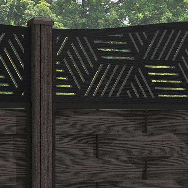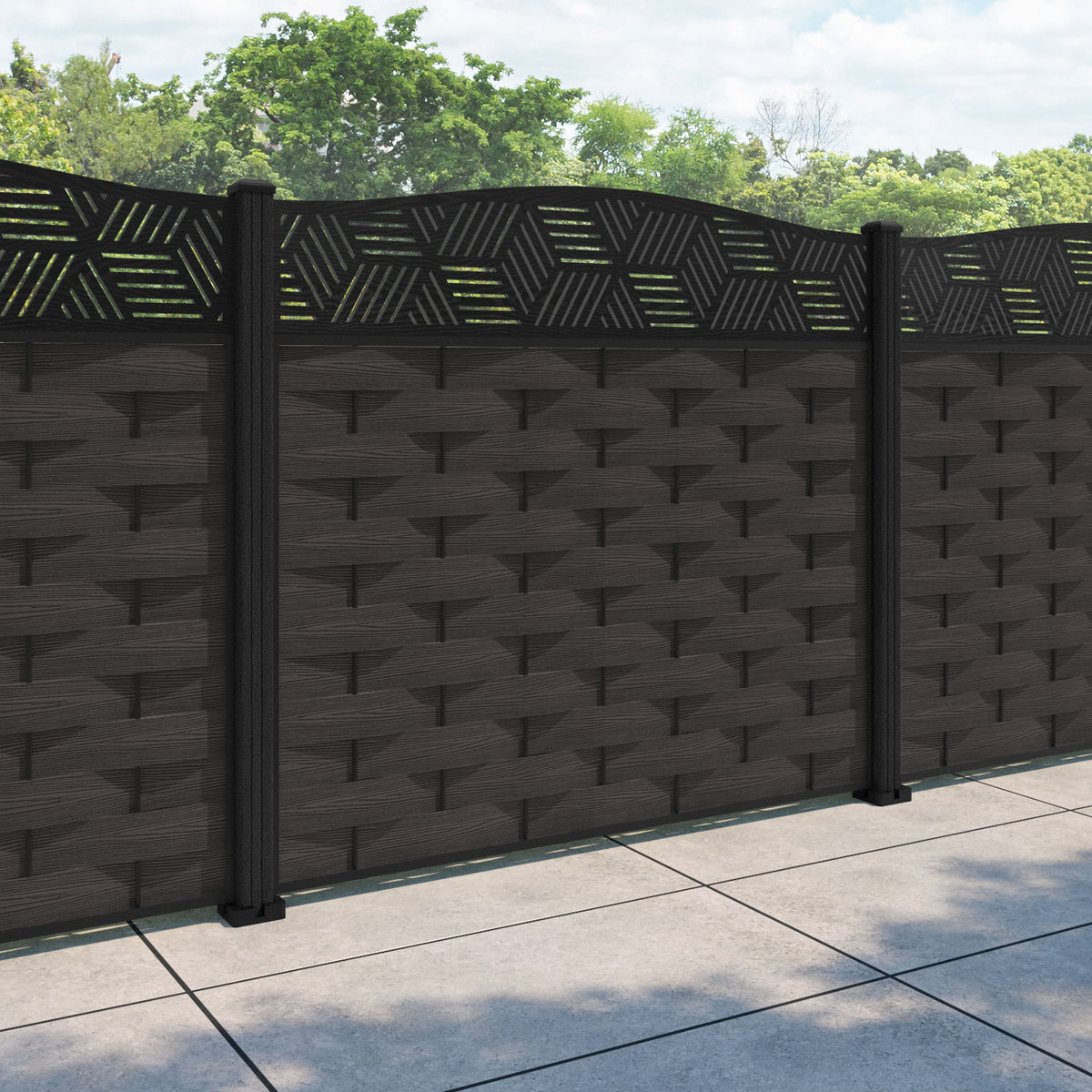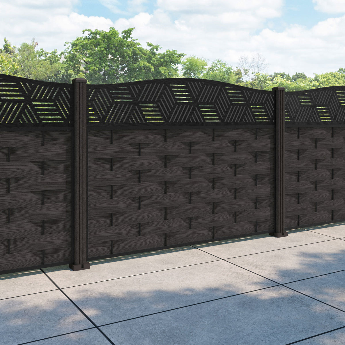 Ripple Cubed Curved Top Fence Panel Dark Oak - with our composite posts
