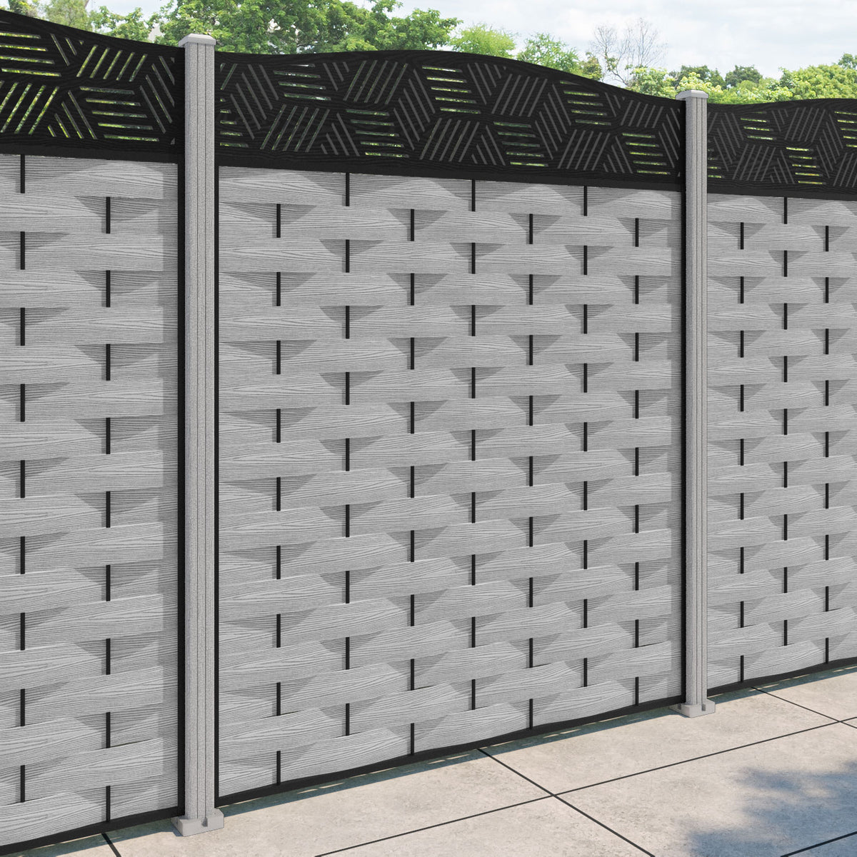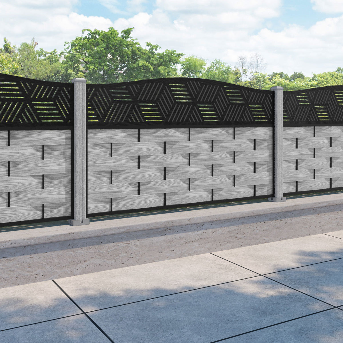 Ripple Cubed Curved Top Fence Panel Light Grey - with our composite posts