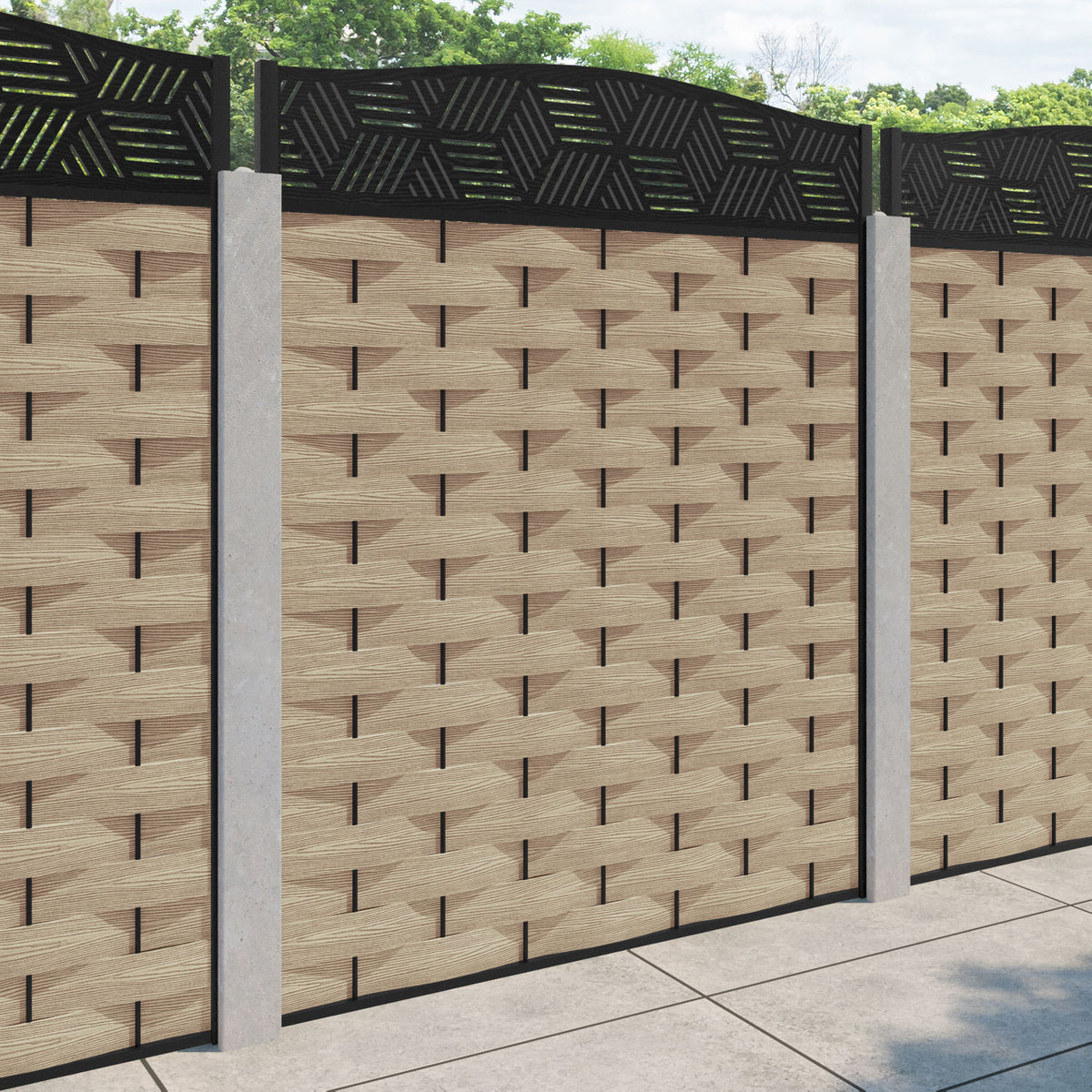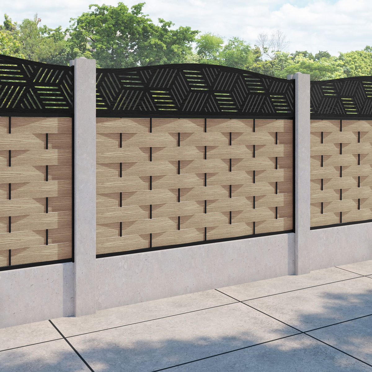 Ripple Cubed Curved Top Fence Panel Light Oak - for existing concrete posts