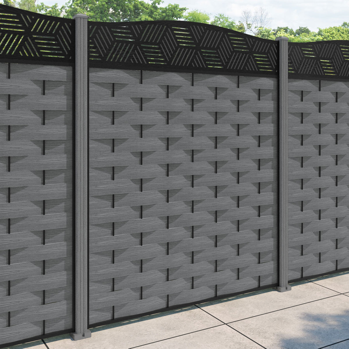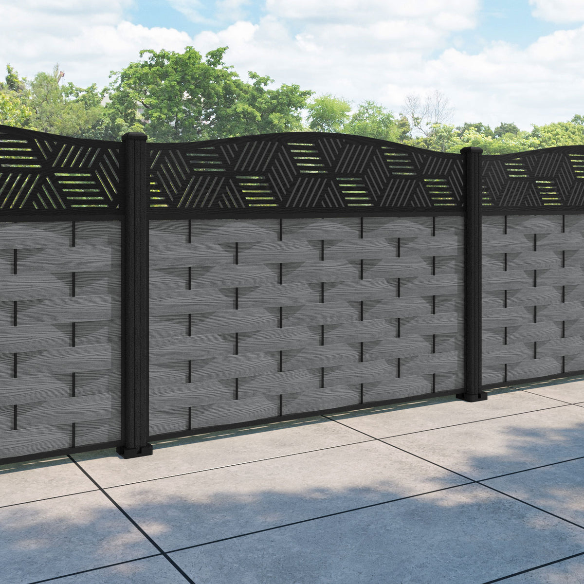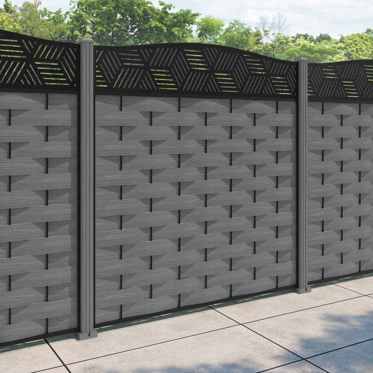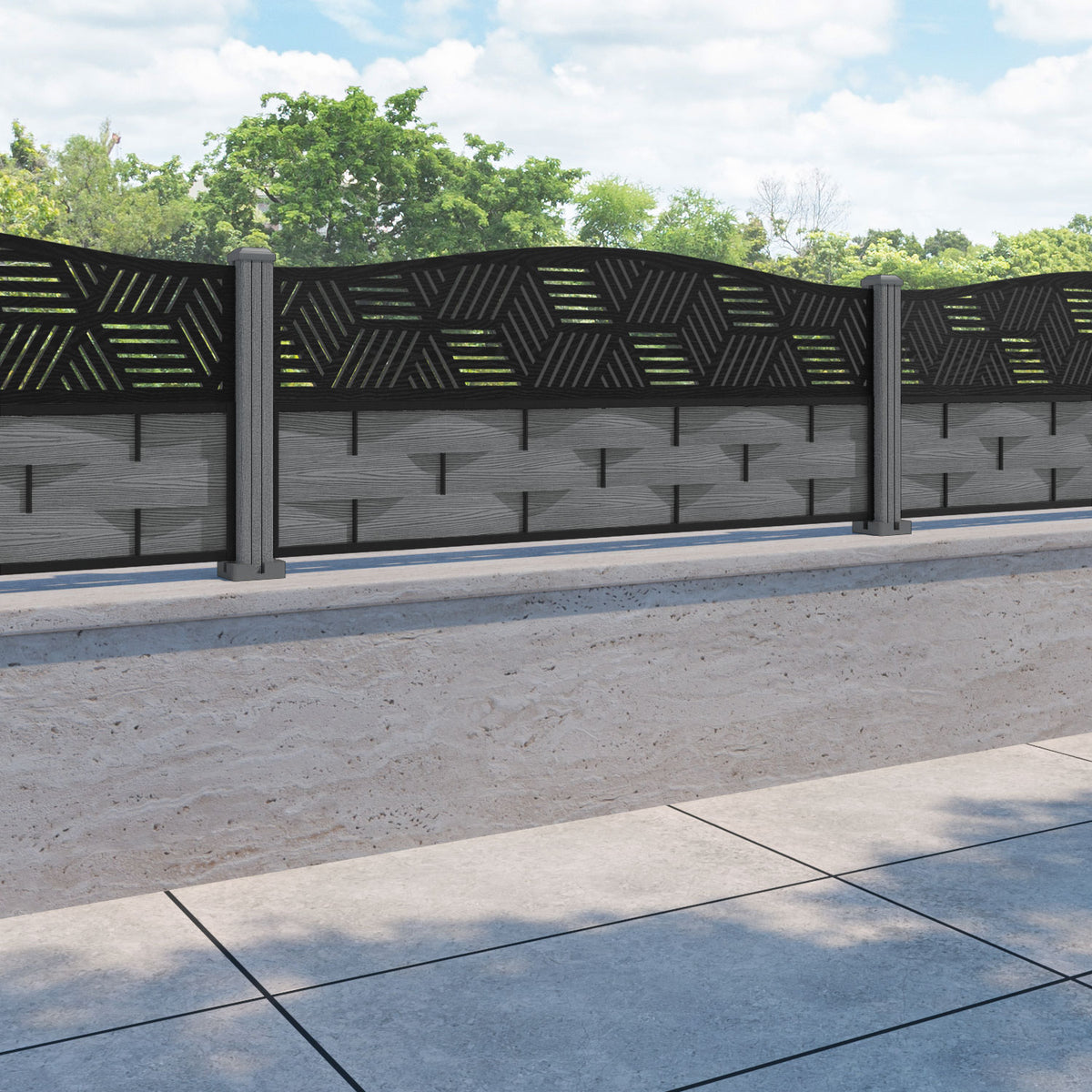 Ripple Cubed Curved Top Fence Panel Mid Grey - with our composite posts