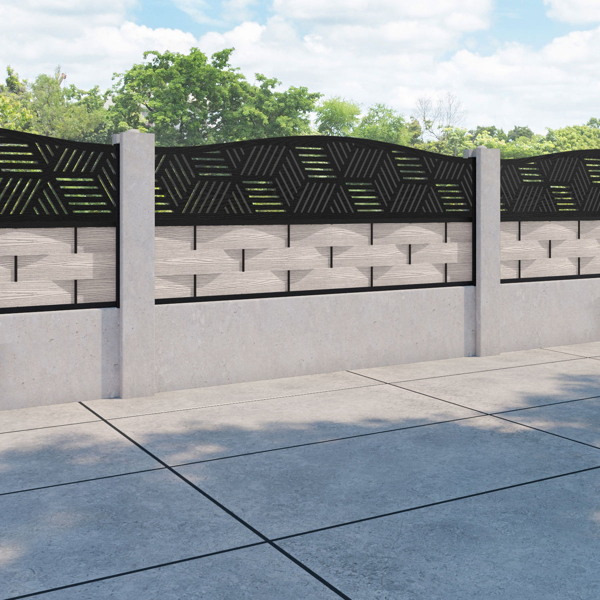 Ripple Cubed Curved Top Fence Panel Mid Stone - for existing concrete posts