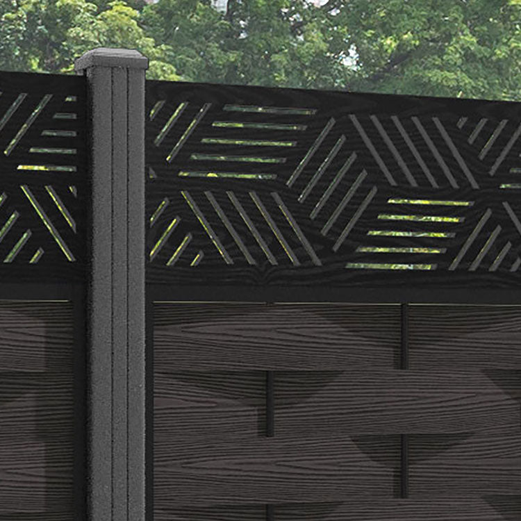 Ripple Cubed Fence Panel Dark Oak - with our aluminium posts
