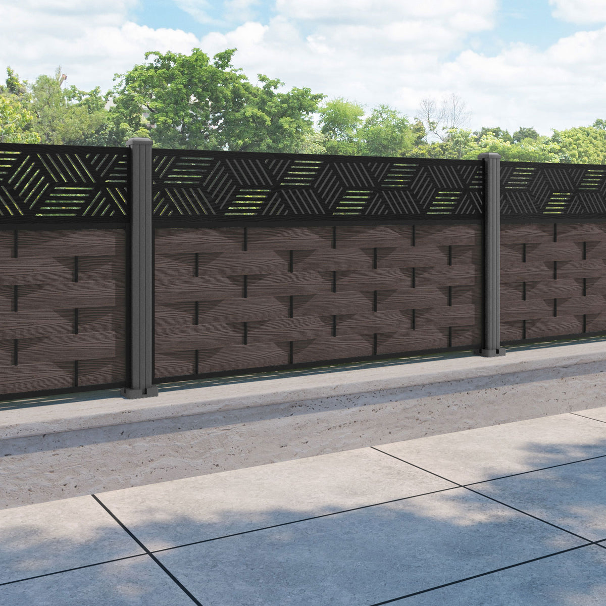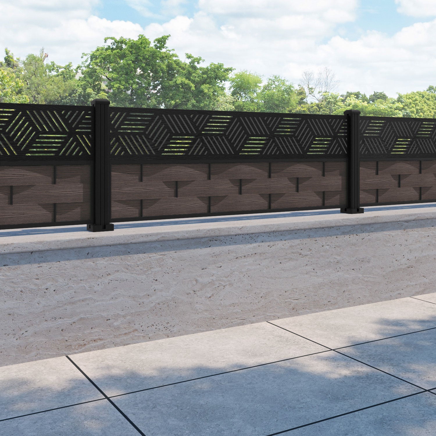 Ripple Cubed Fence Panel Mid Brown - with our aluminium posts