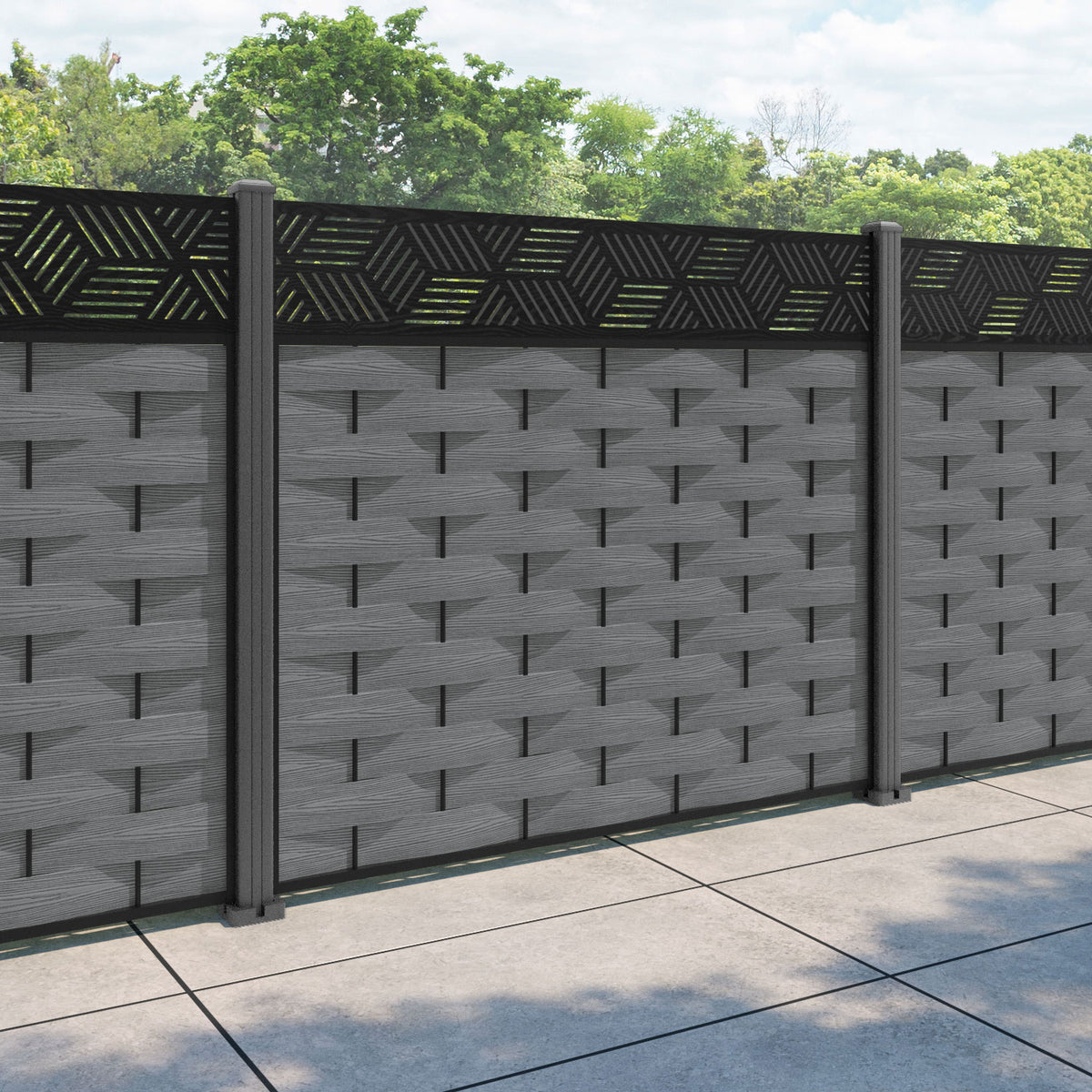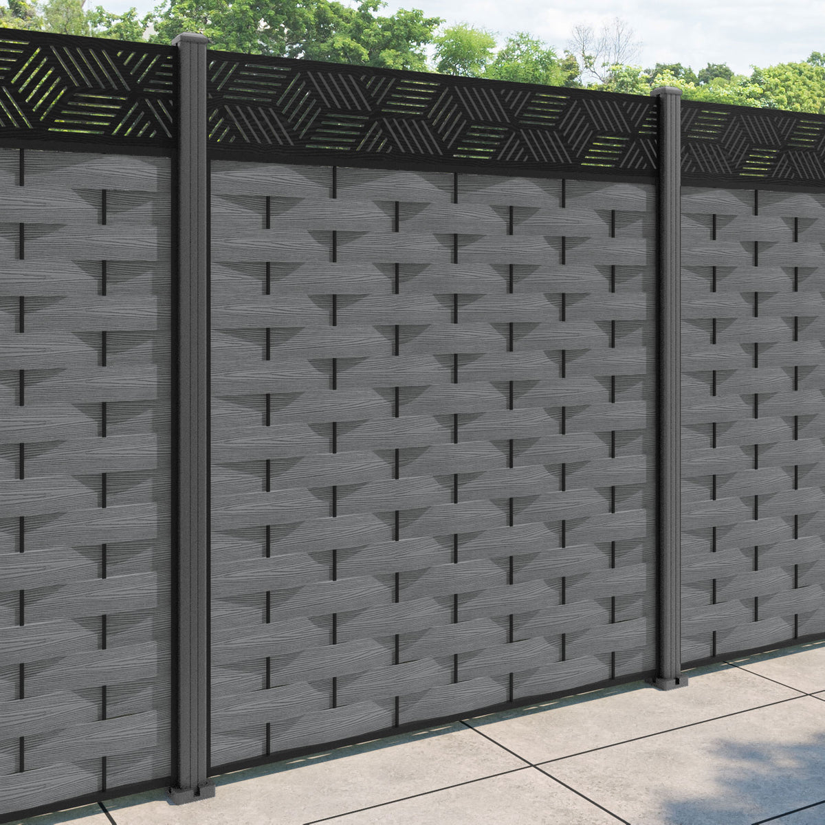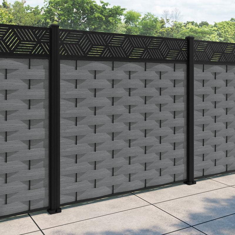 Ripple Cubed Fence Panel Mid Grey - with our aluminium posts