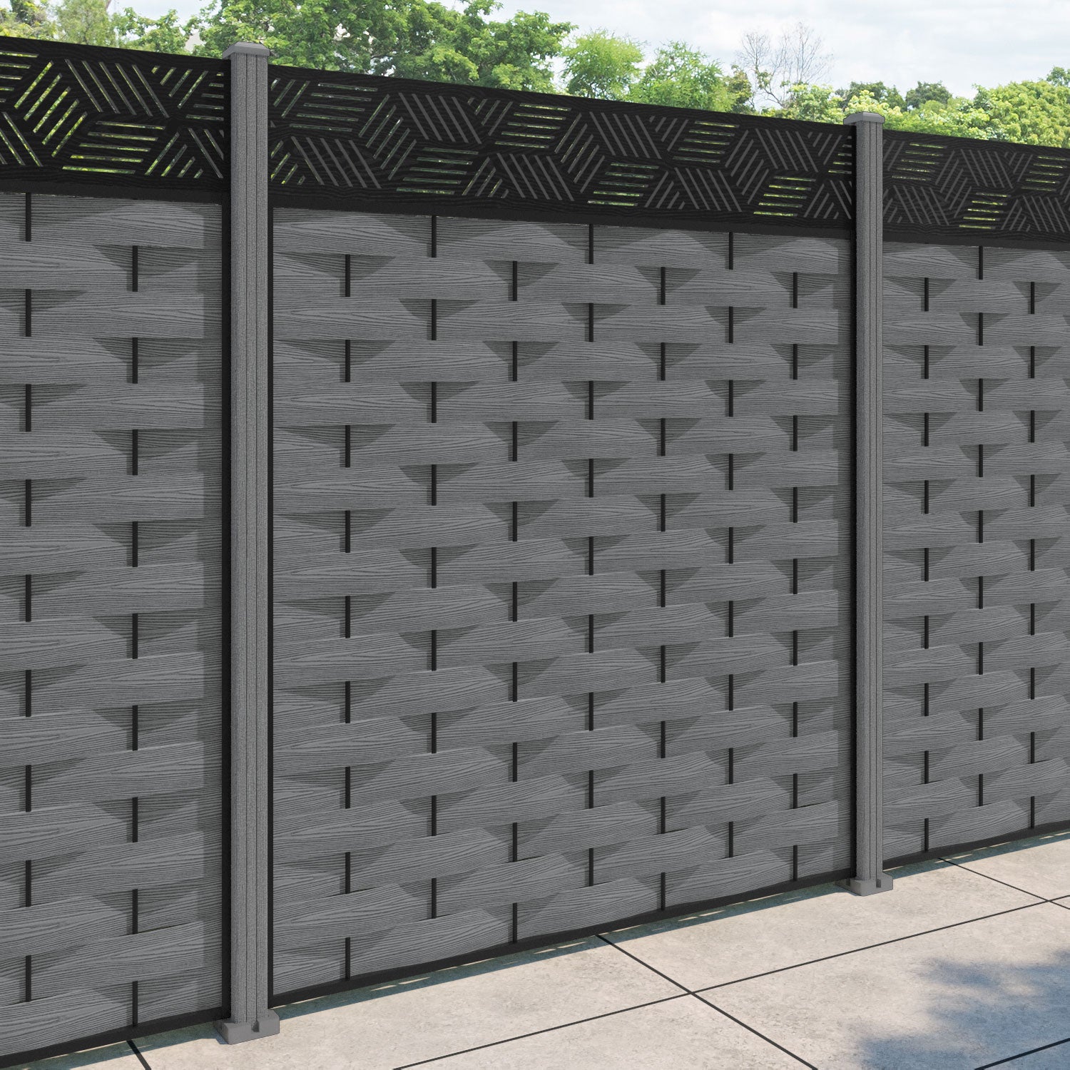 Ripple Cubed Fence Panel Mid Grey - with our composite posts