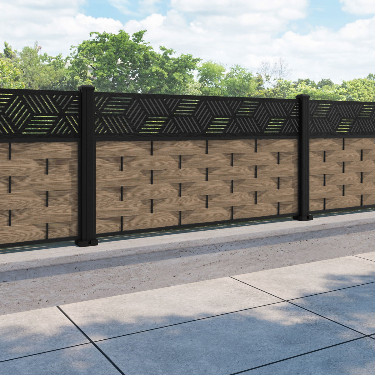 Ripple Cubed Fence Panel Teak - with our aluminium posts