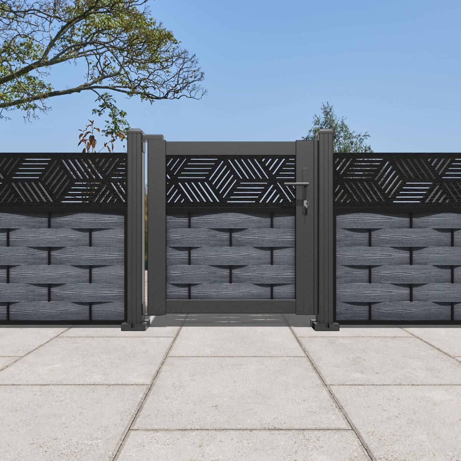 Pair your gate with our eco-friendly composite or aluminium slats for a seamless match to our fencing collections, ensuring a stylish and cohesive look.