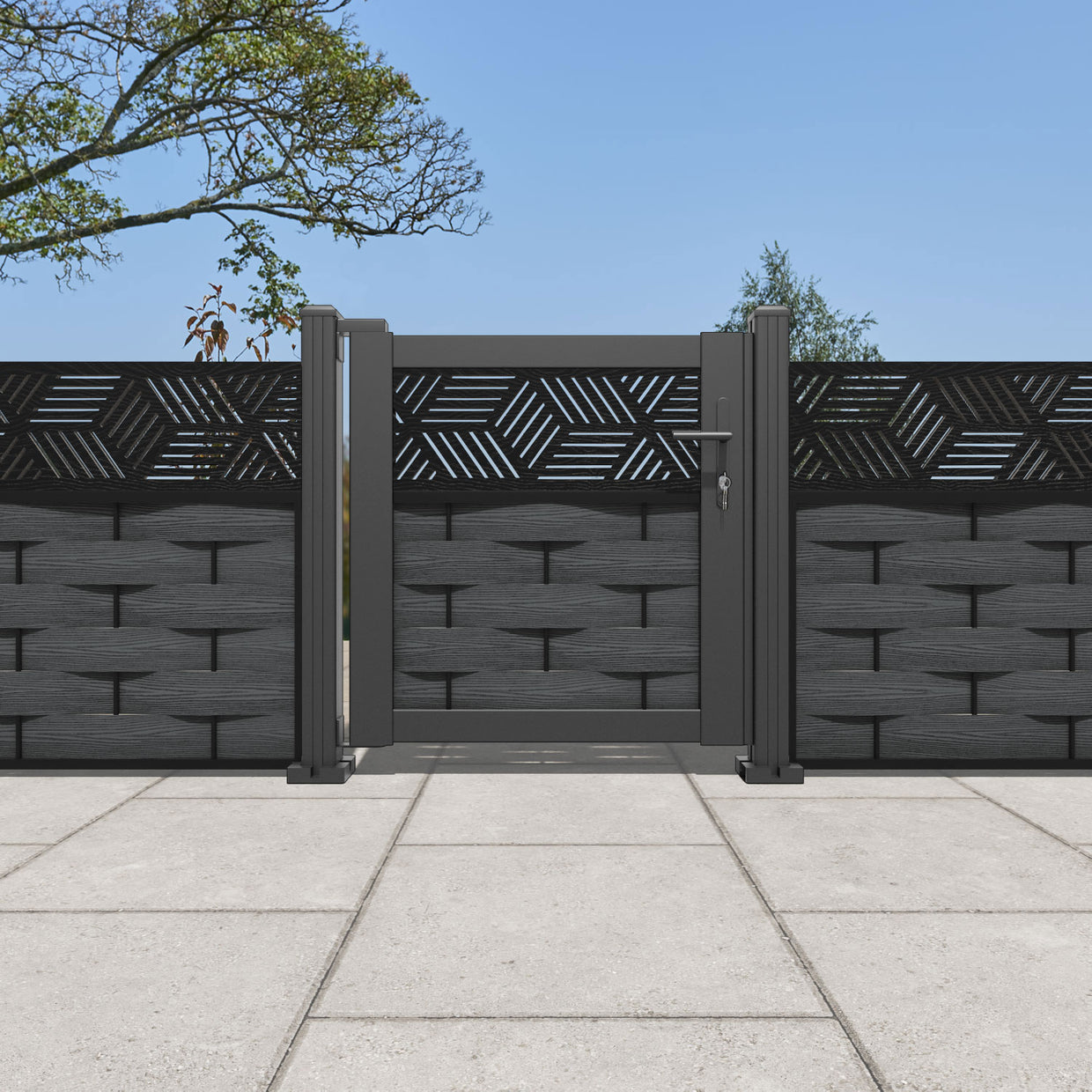 Pair your gate with our eco-friendly composite or aluminium slats for a seamless match to our fencing collections, ensuring a stylish and cohesive look.