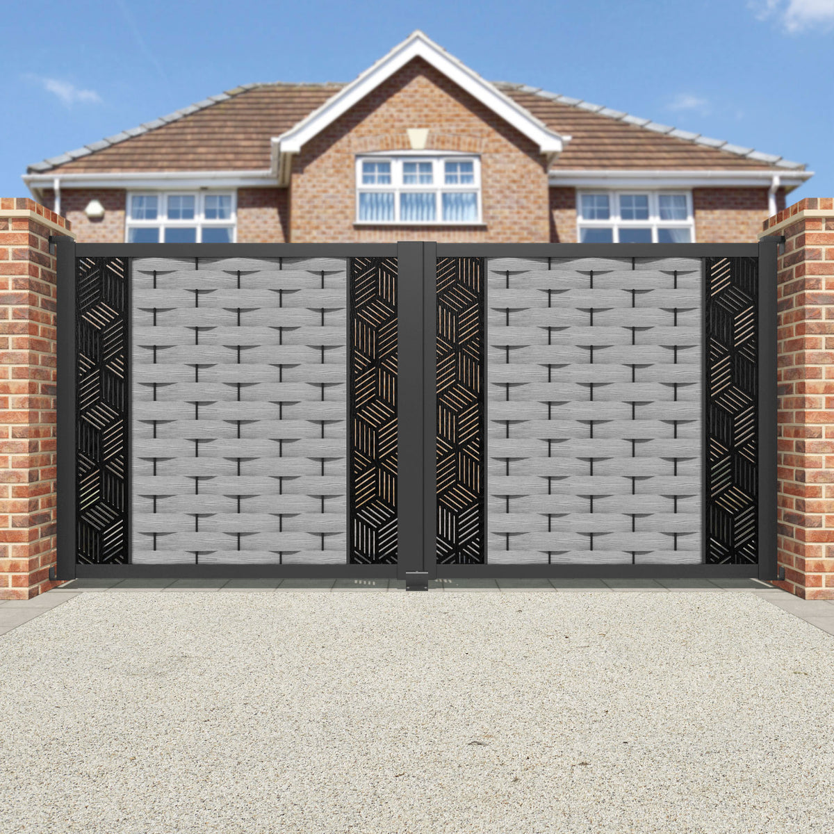Ripple Cubed Straight Top Driveway Gate Light Grey - Middle & End Screen