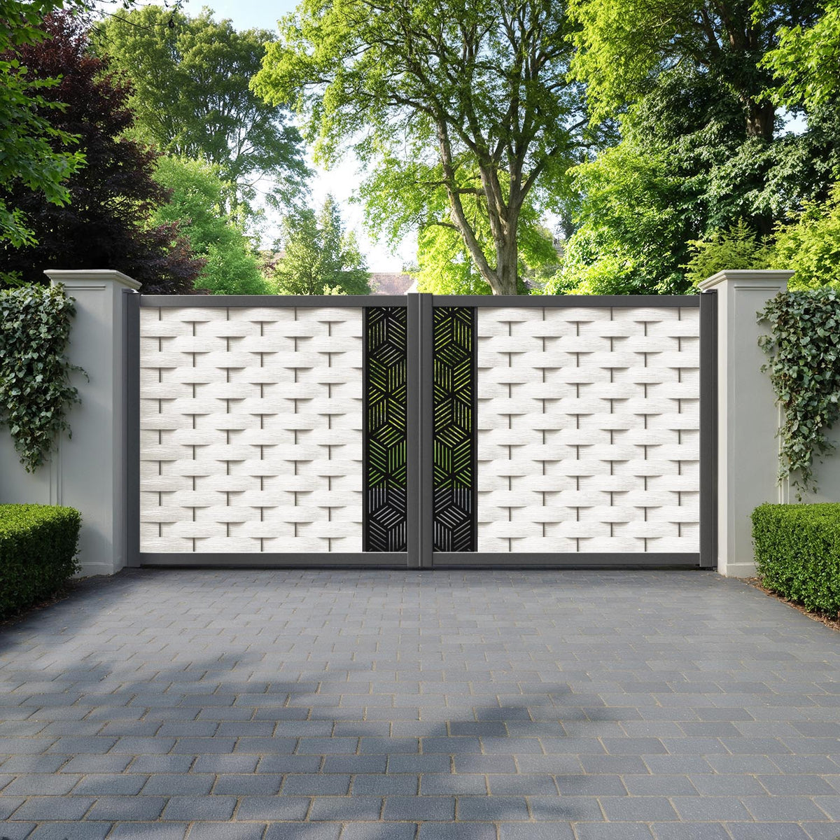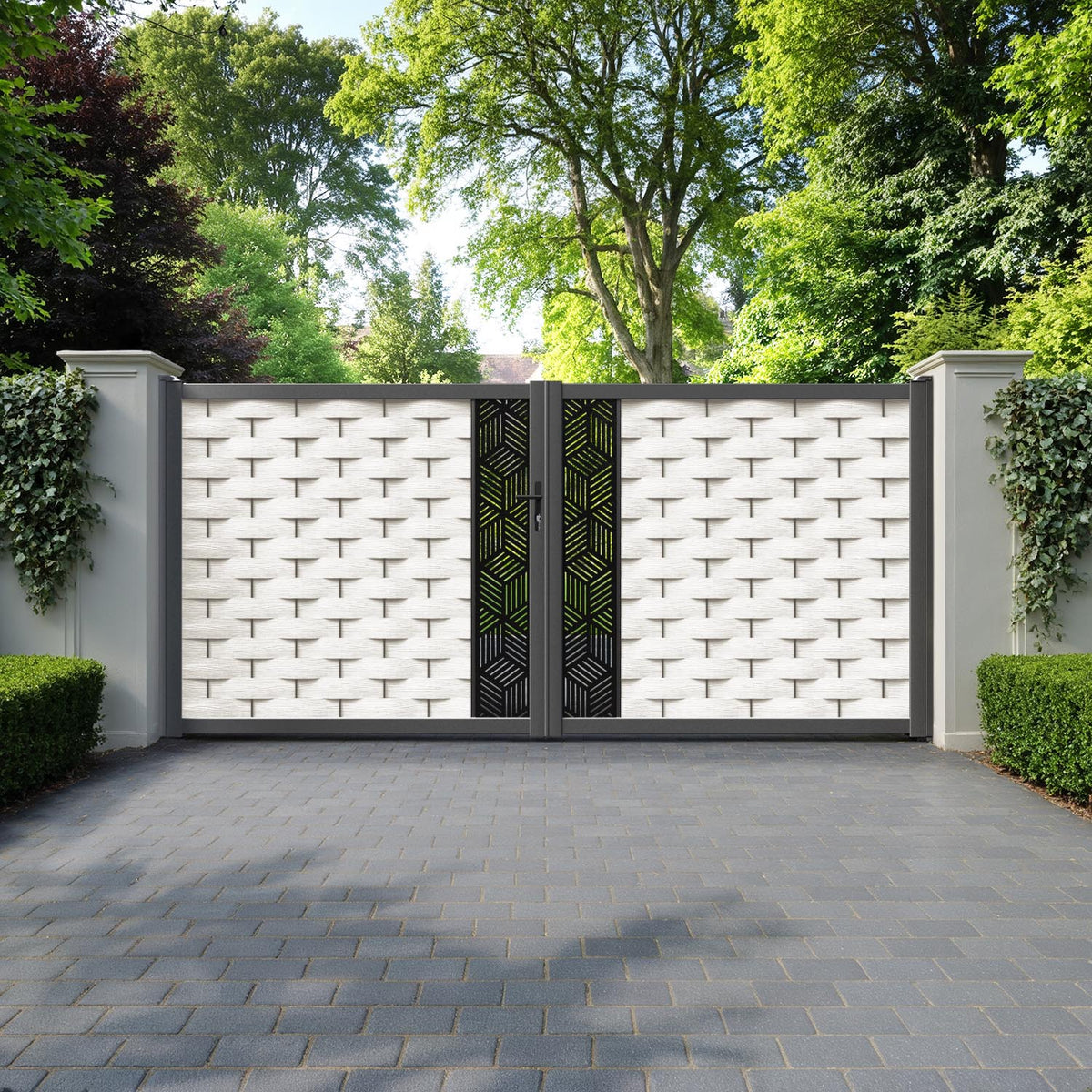 Ripple Cubed Straight Top Driveway Gate Light Stone - Middle Screen