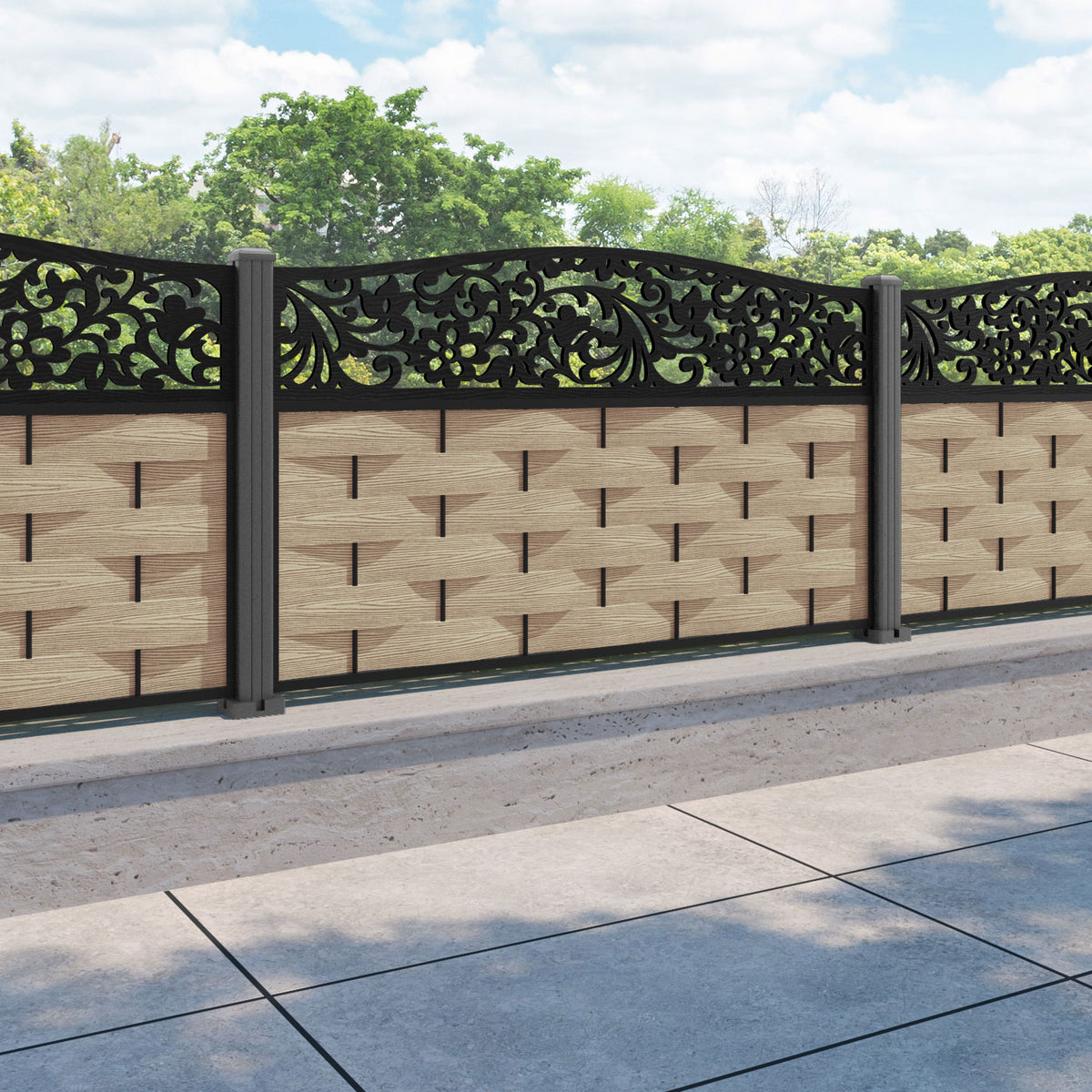 Ripple Eden Curved Top Fence Panel Light Oak - with our aluminium posts