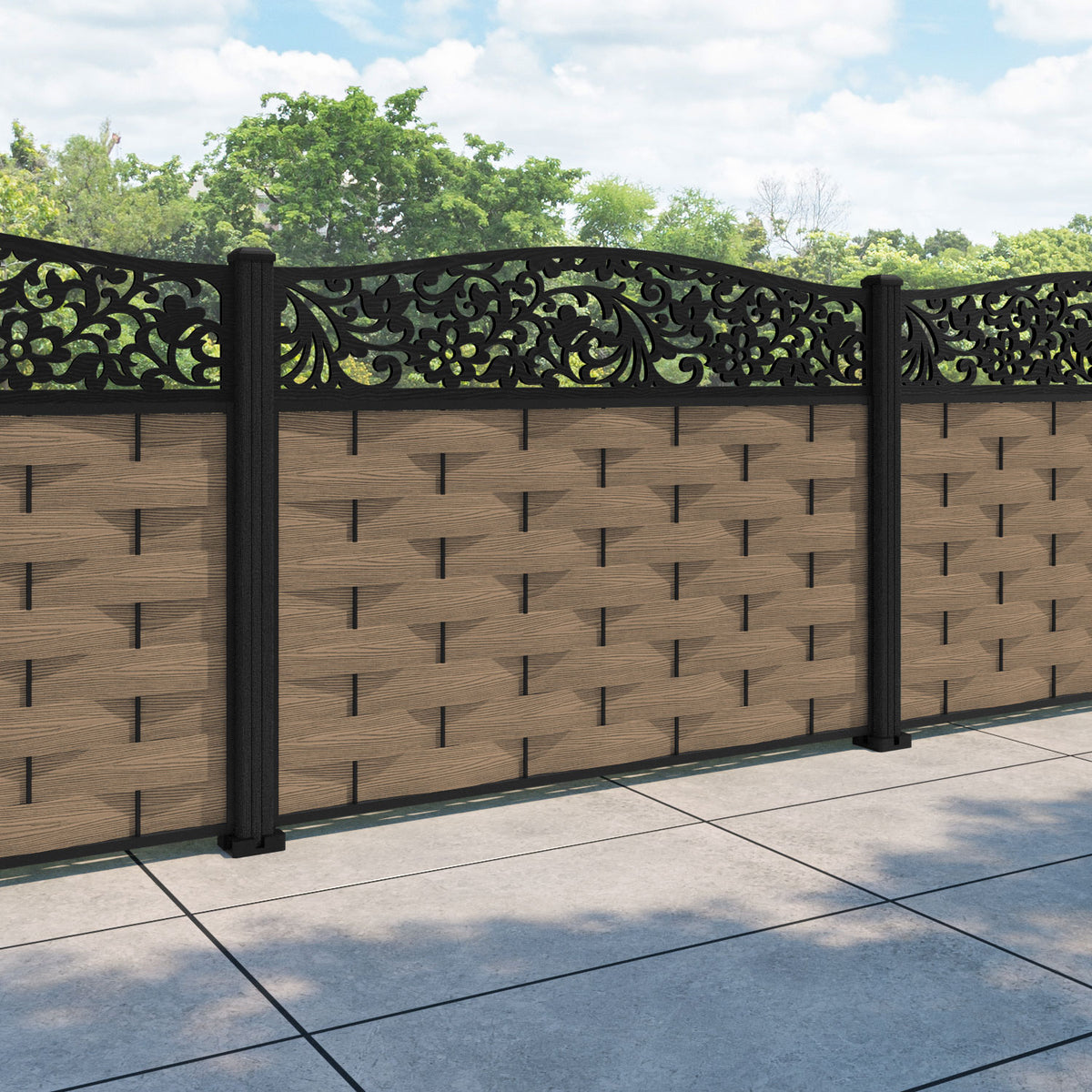 Ripple Eden Curved Top Fence Panel Teak - with our composite posts