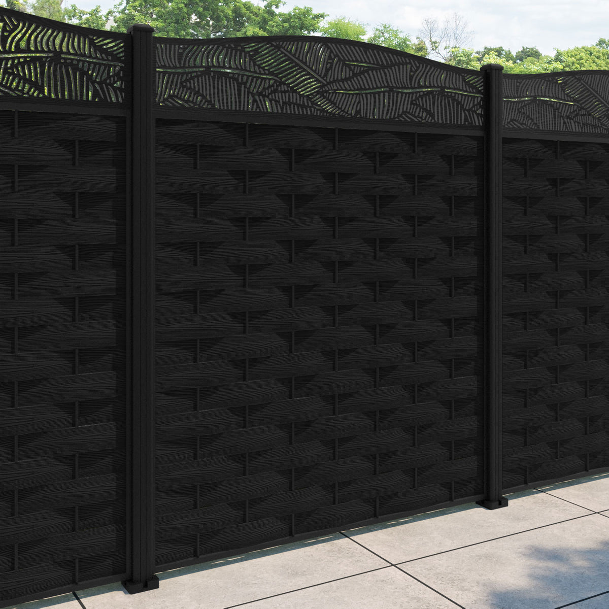 Ripple Feather Curved Top Fence Panel Black - with our aluminium posts