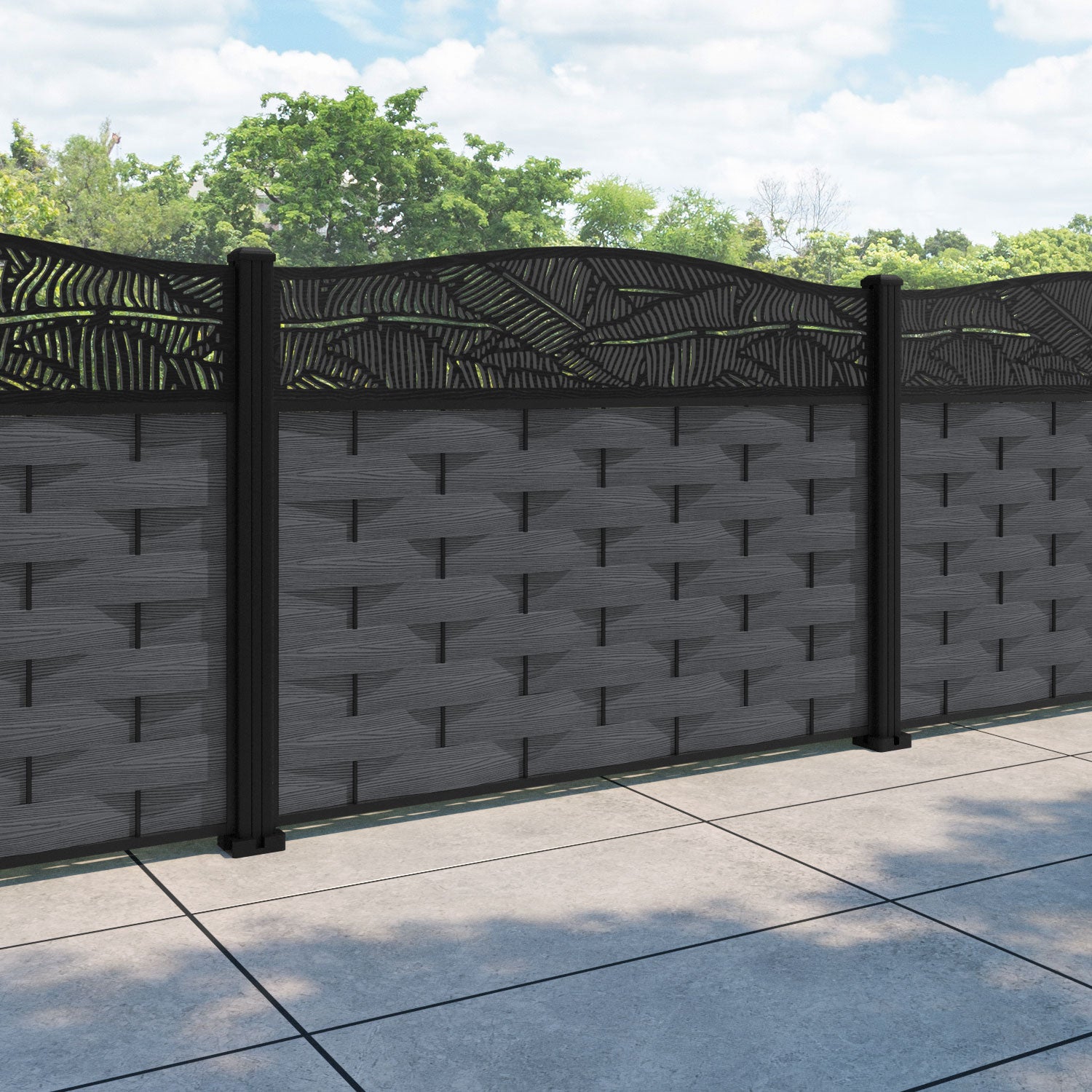 Ripple Feather Curved Top Fence Panel Dark Grey - with our aluminium posts