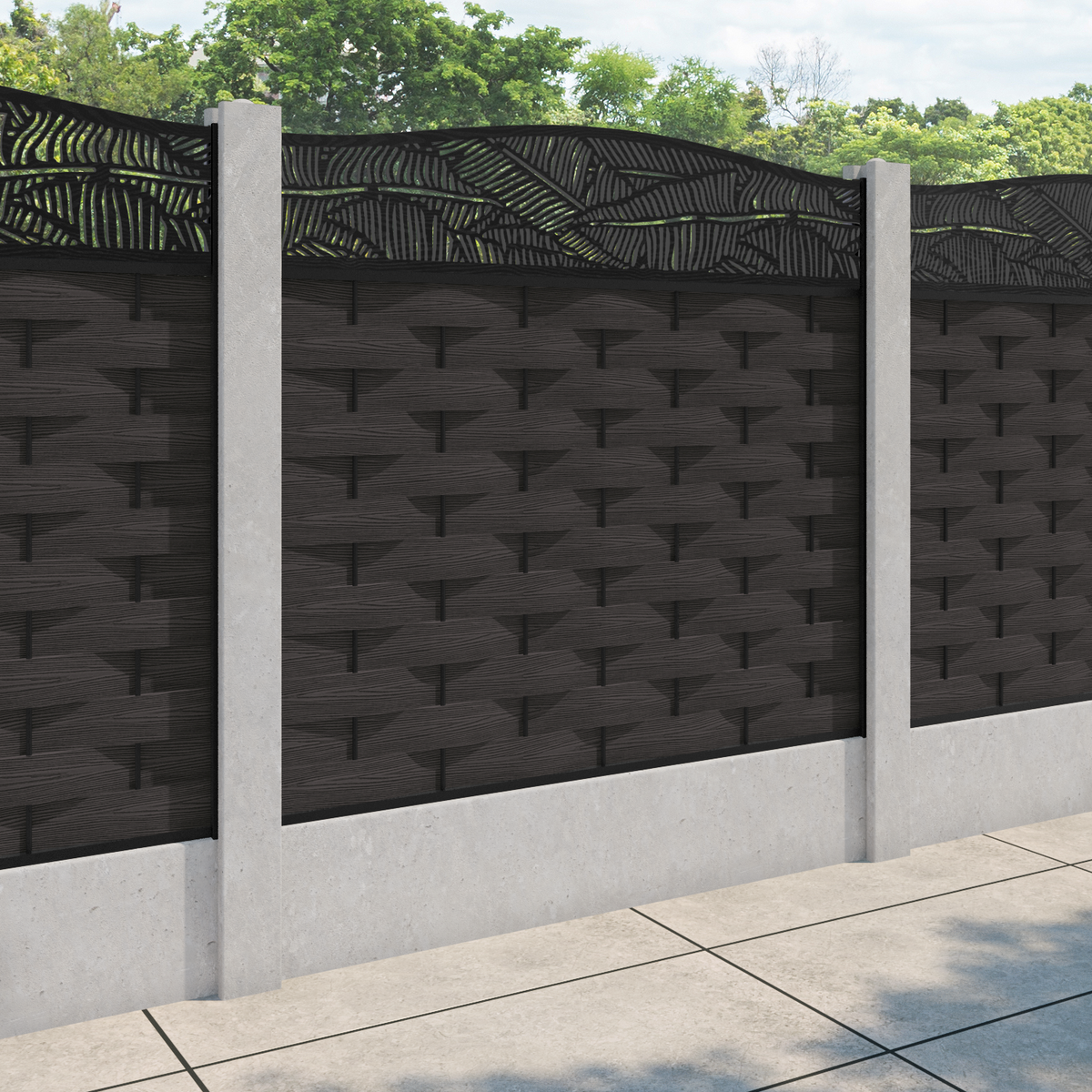 Ripple Feather Curved Top Fence Panel Dark Oak - for existing concrete posts