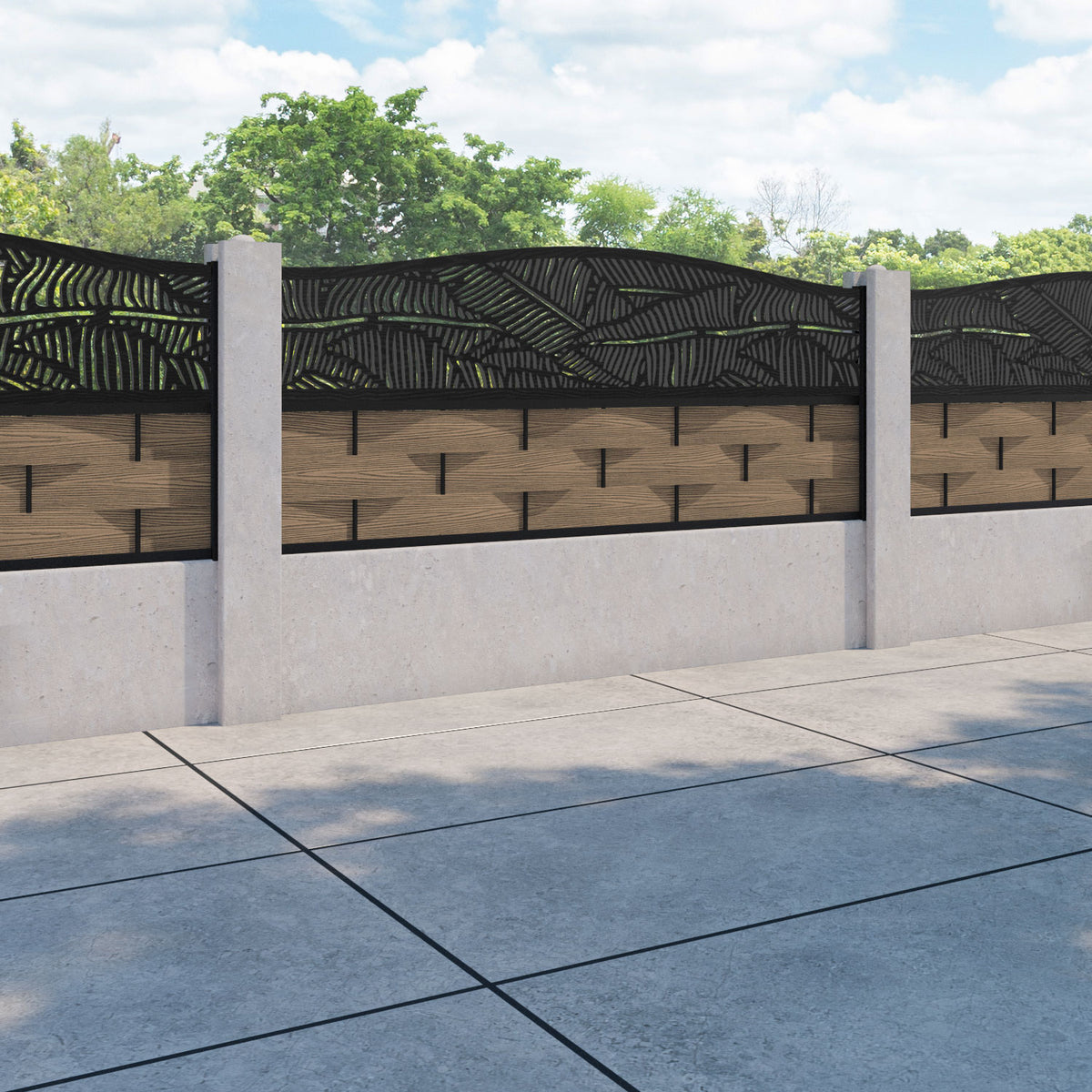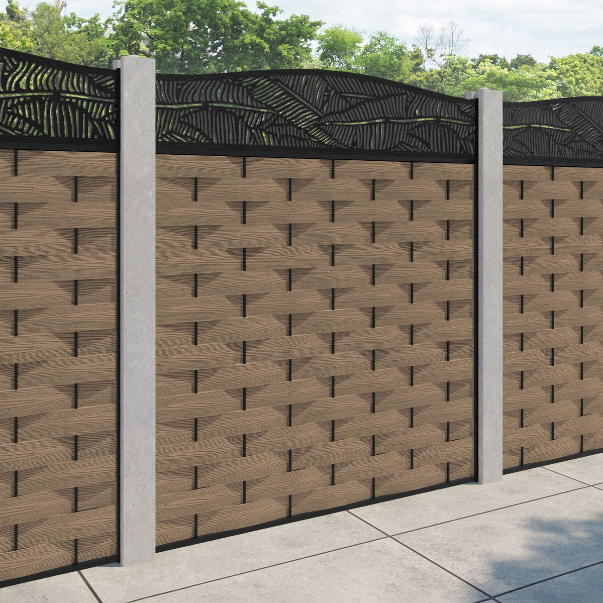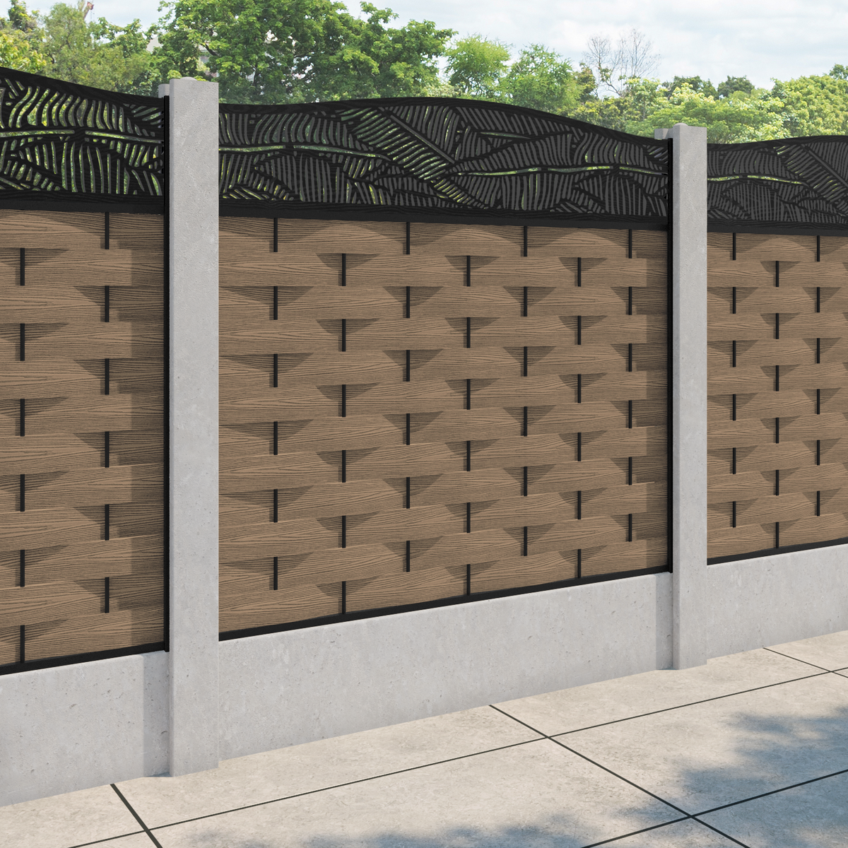 Ripple Feather Curved Top Fence Panel Teak - for existing concrete posts