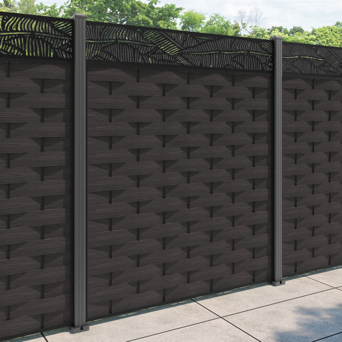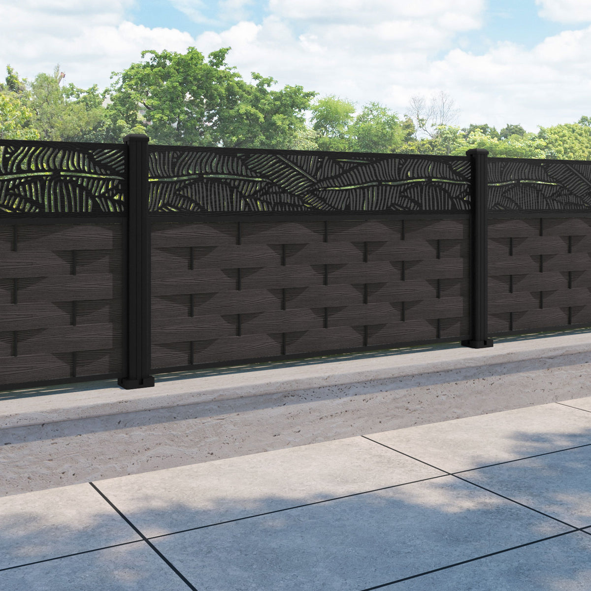 Ripple Feather Fence Panel Dark Oak - with our aluminium posts