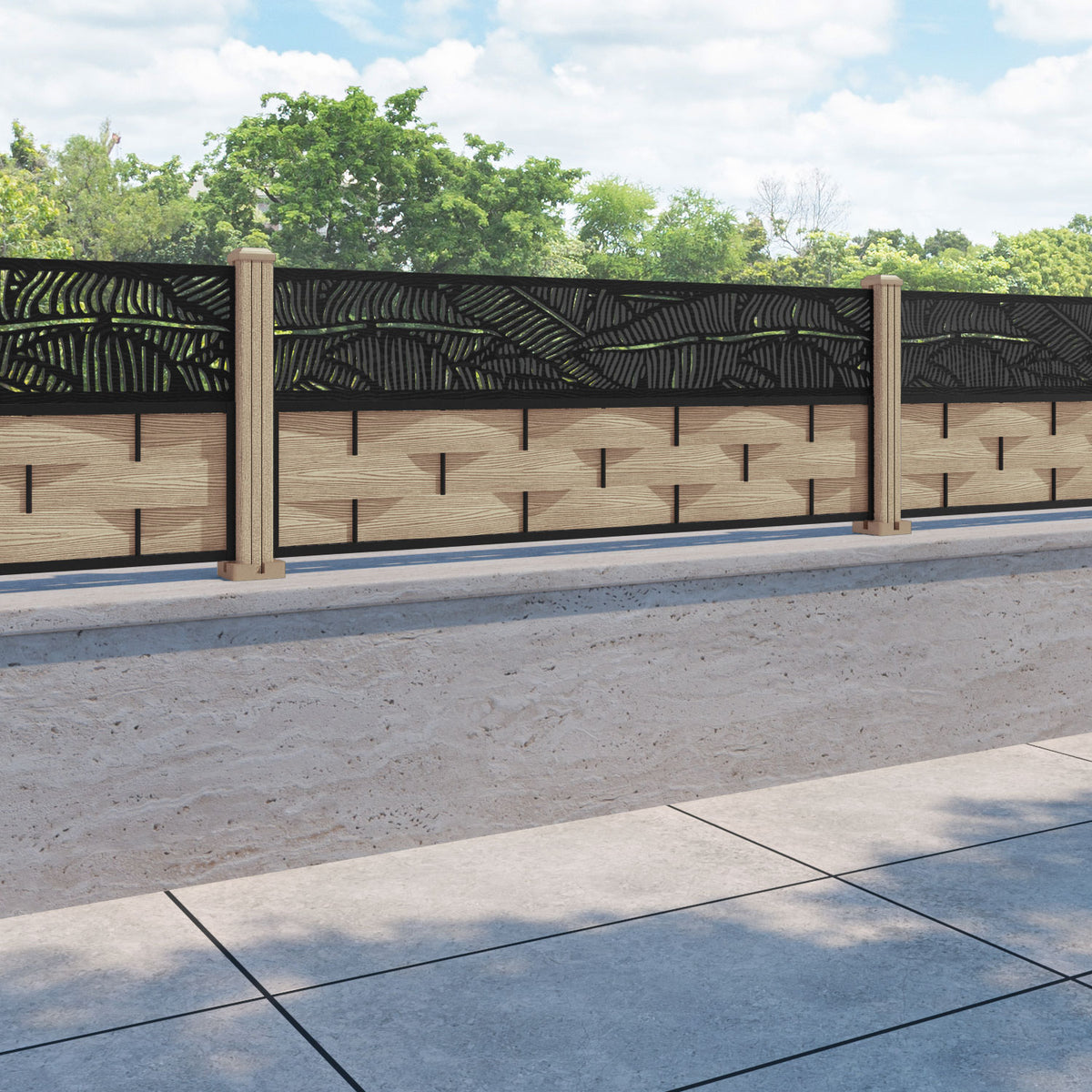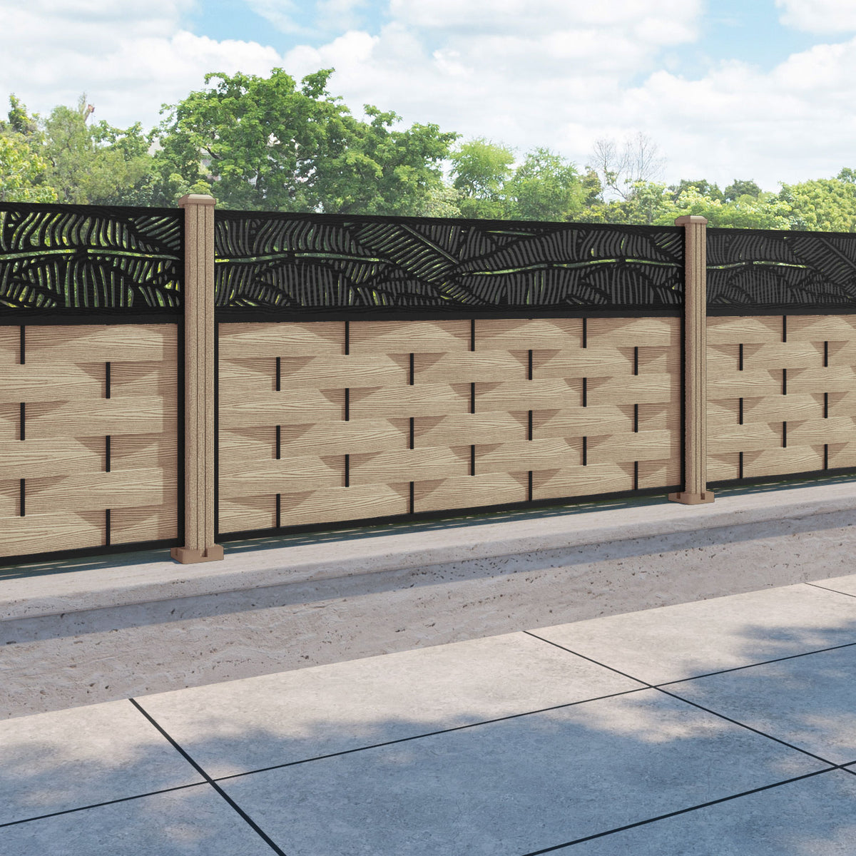 Ripple Feather Fence Panel Light Oak - with our composite posts