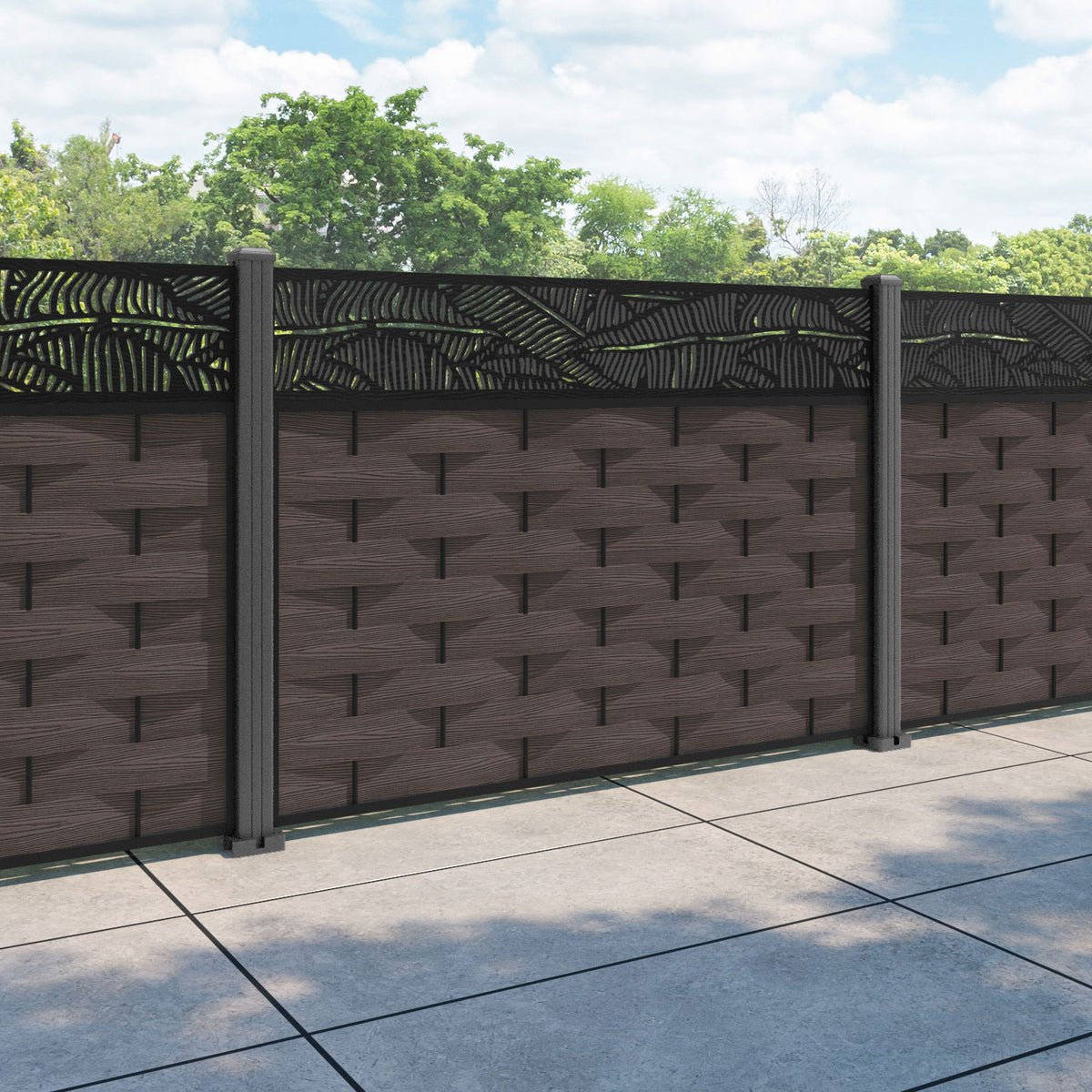 Ripple Feather Fence Panel Mid Brown - with our aluminium posts