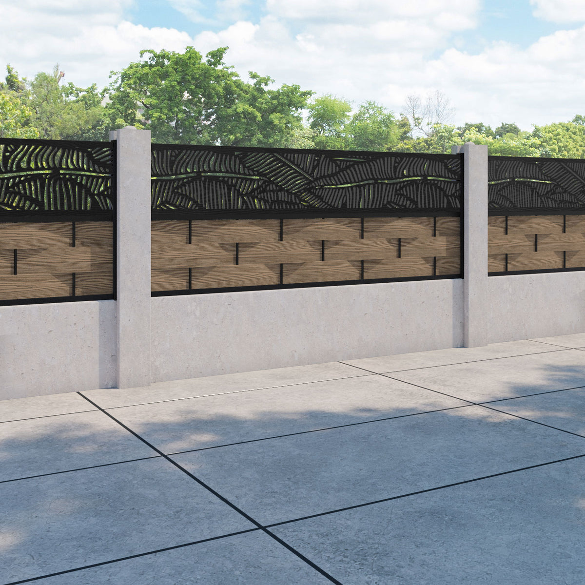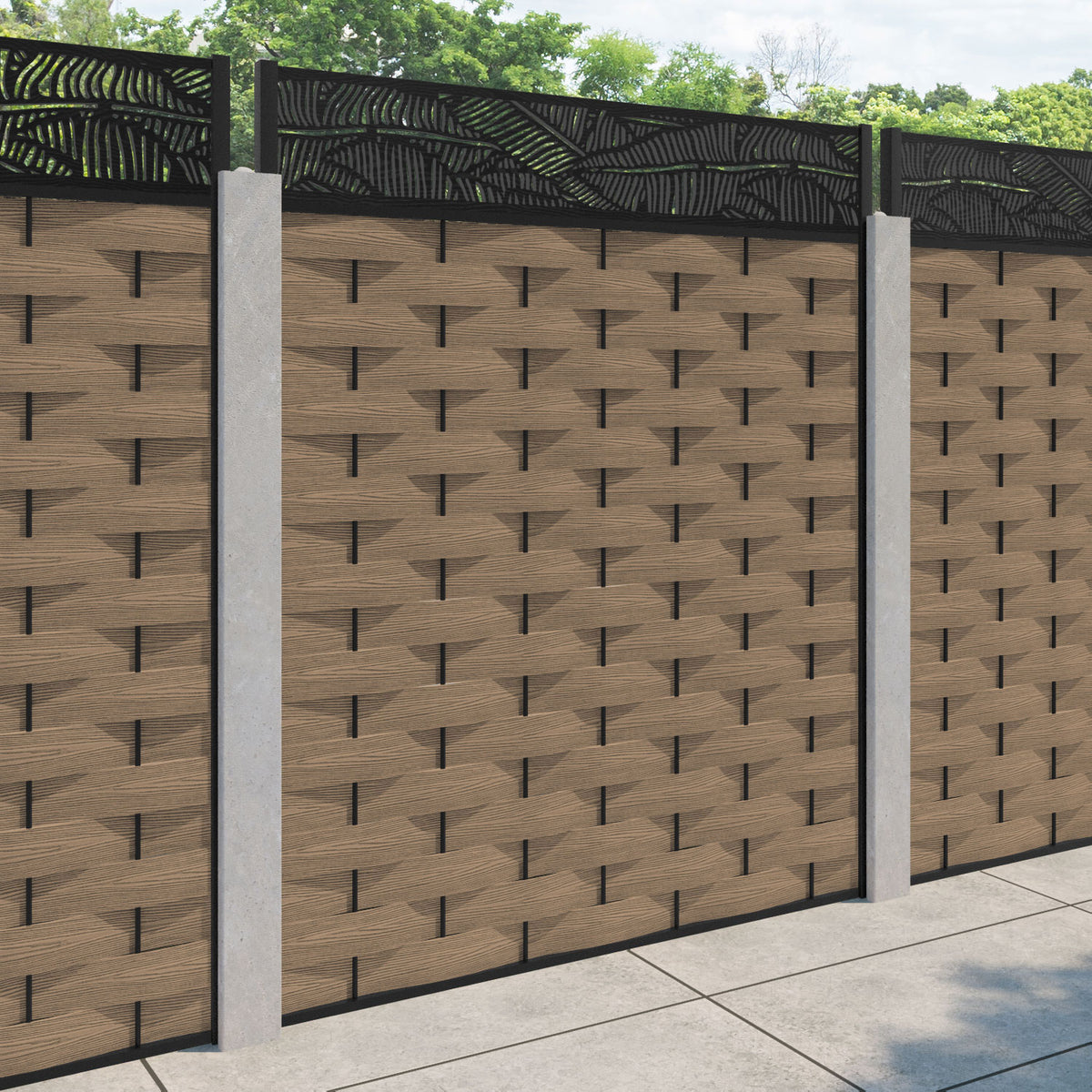 Ripple Feather Fence Panel Teak - for existing concrete posts