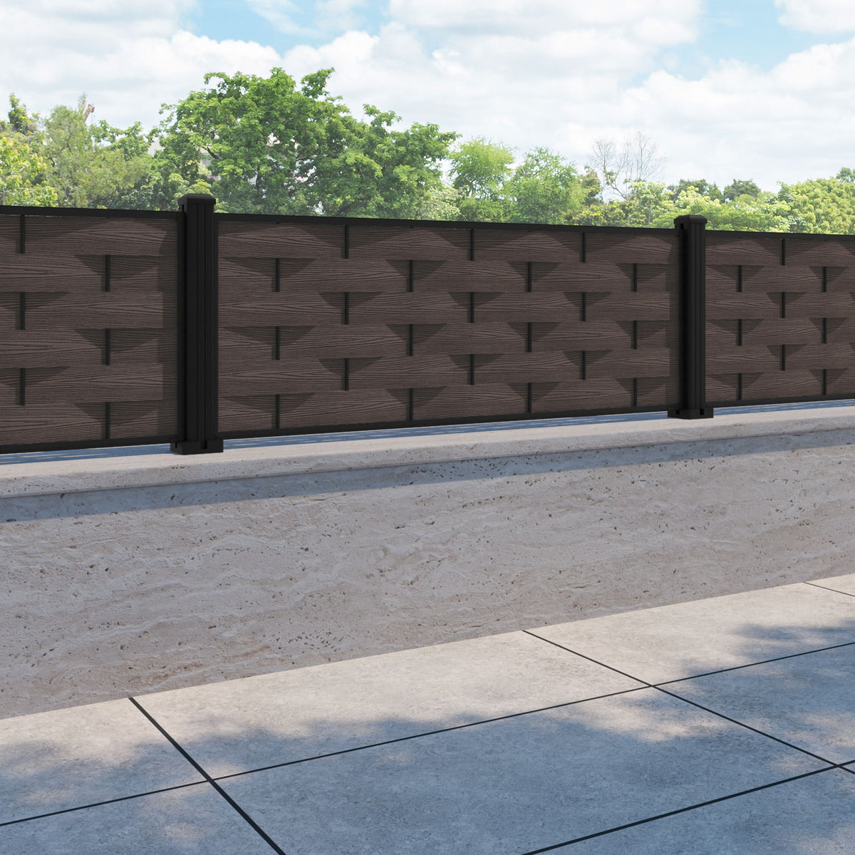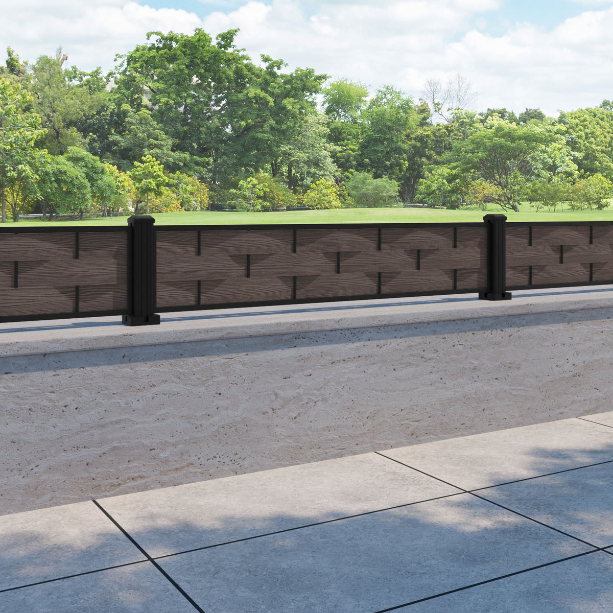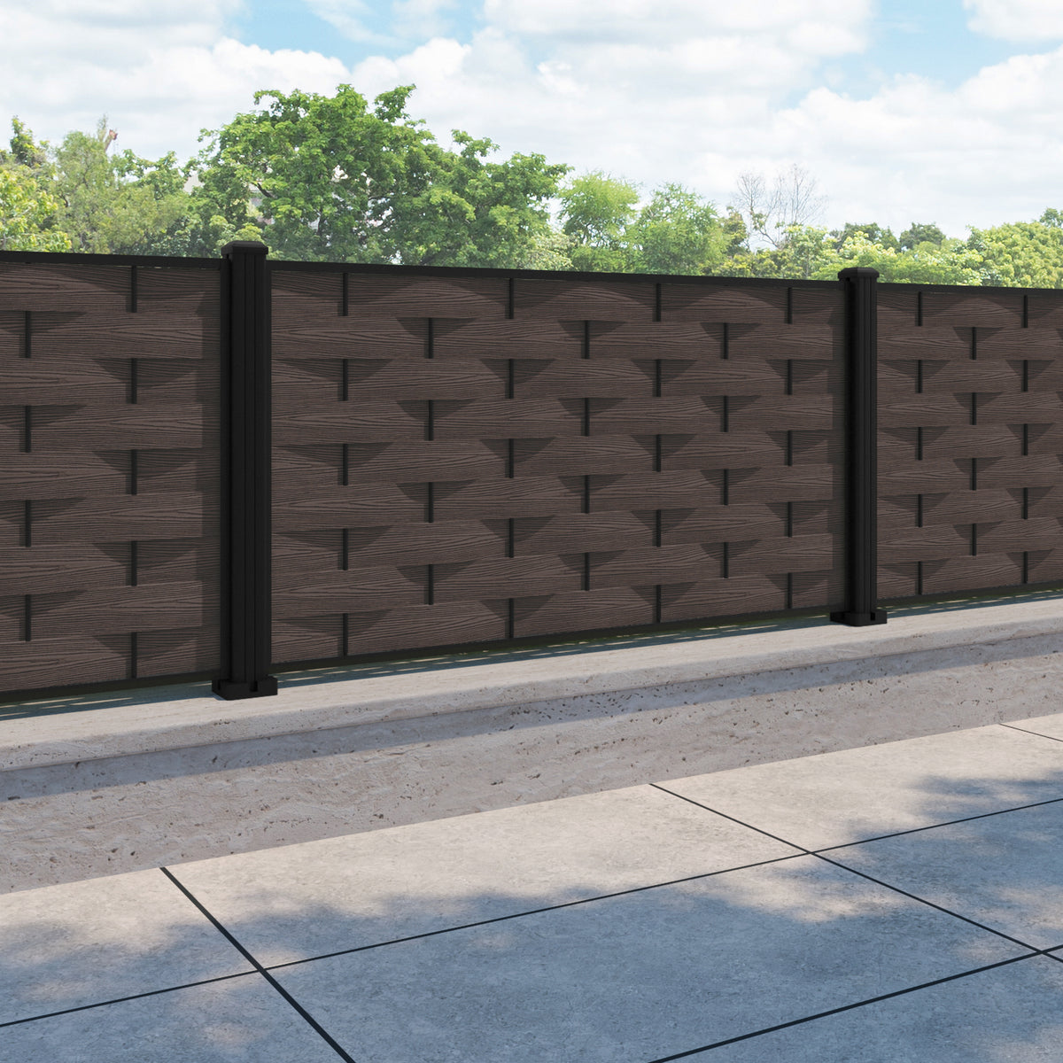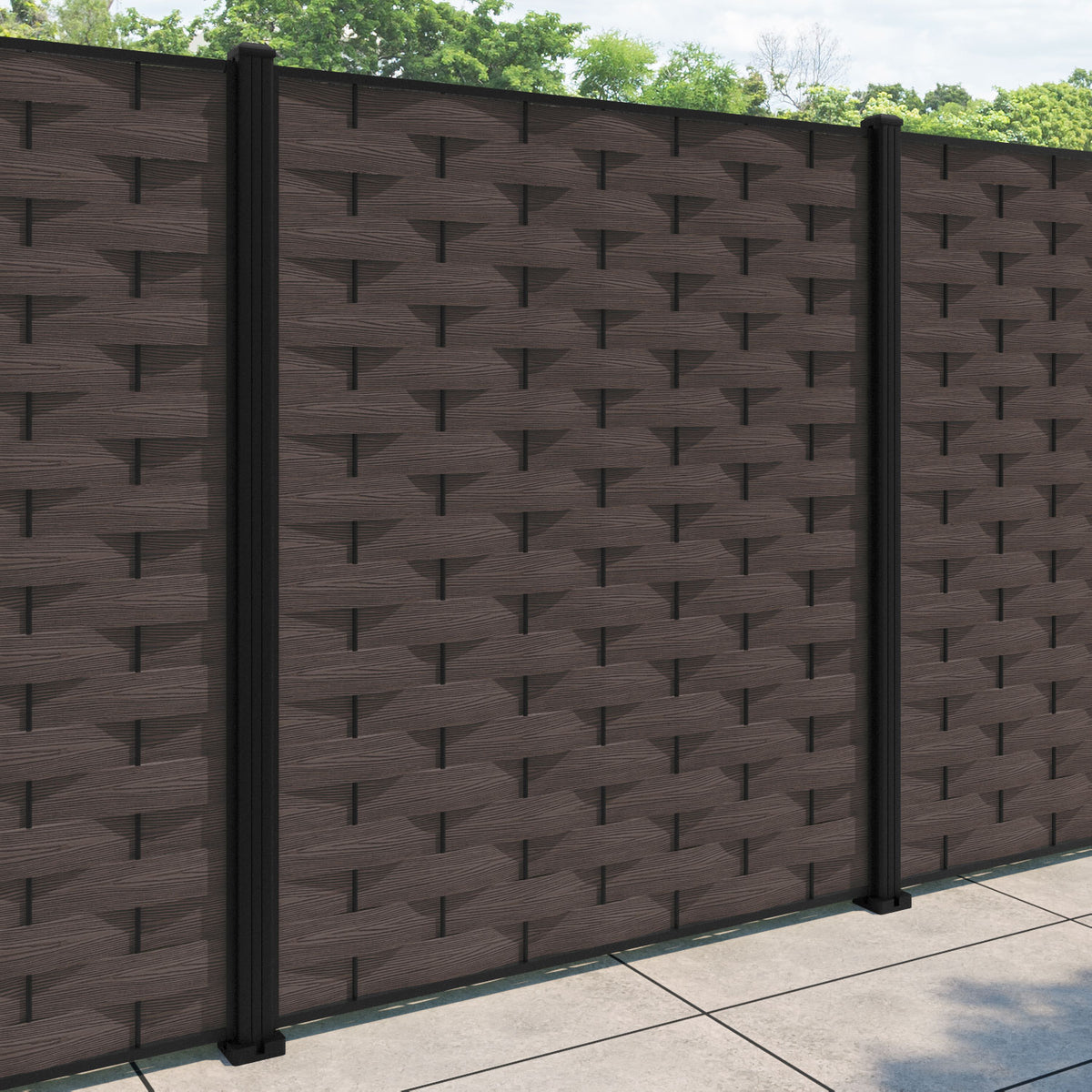 Ripple Fence Panel Mid Brown - with our aluminium posts