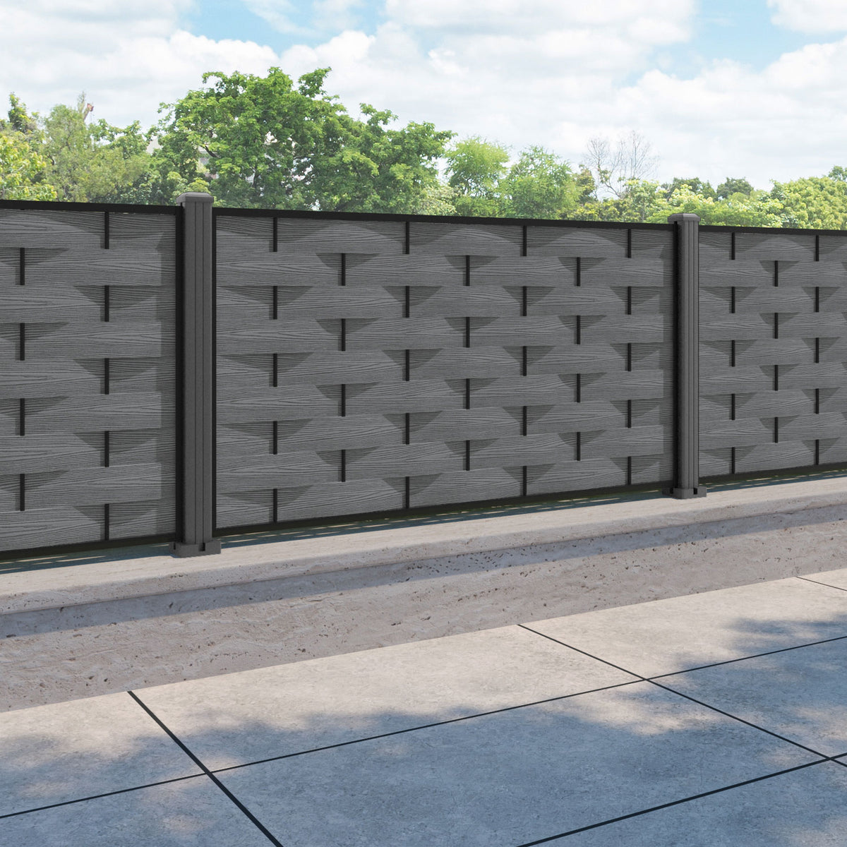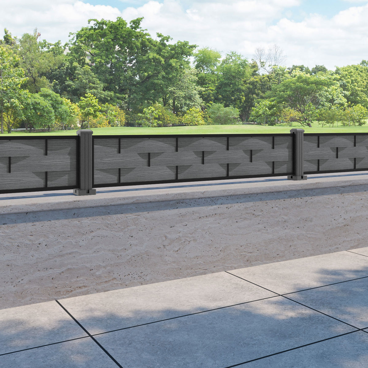 Ripple Fence Panel Mid Grey - with our aluminium posts