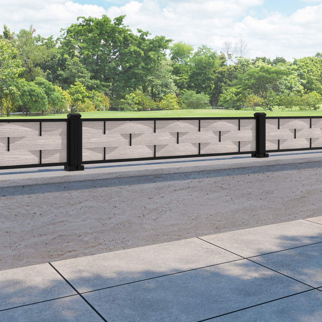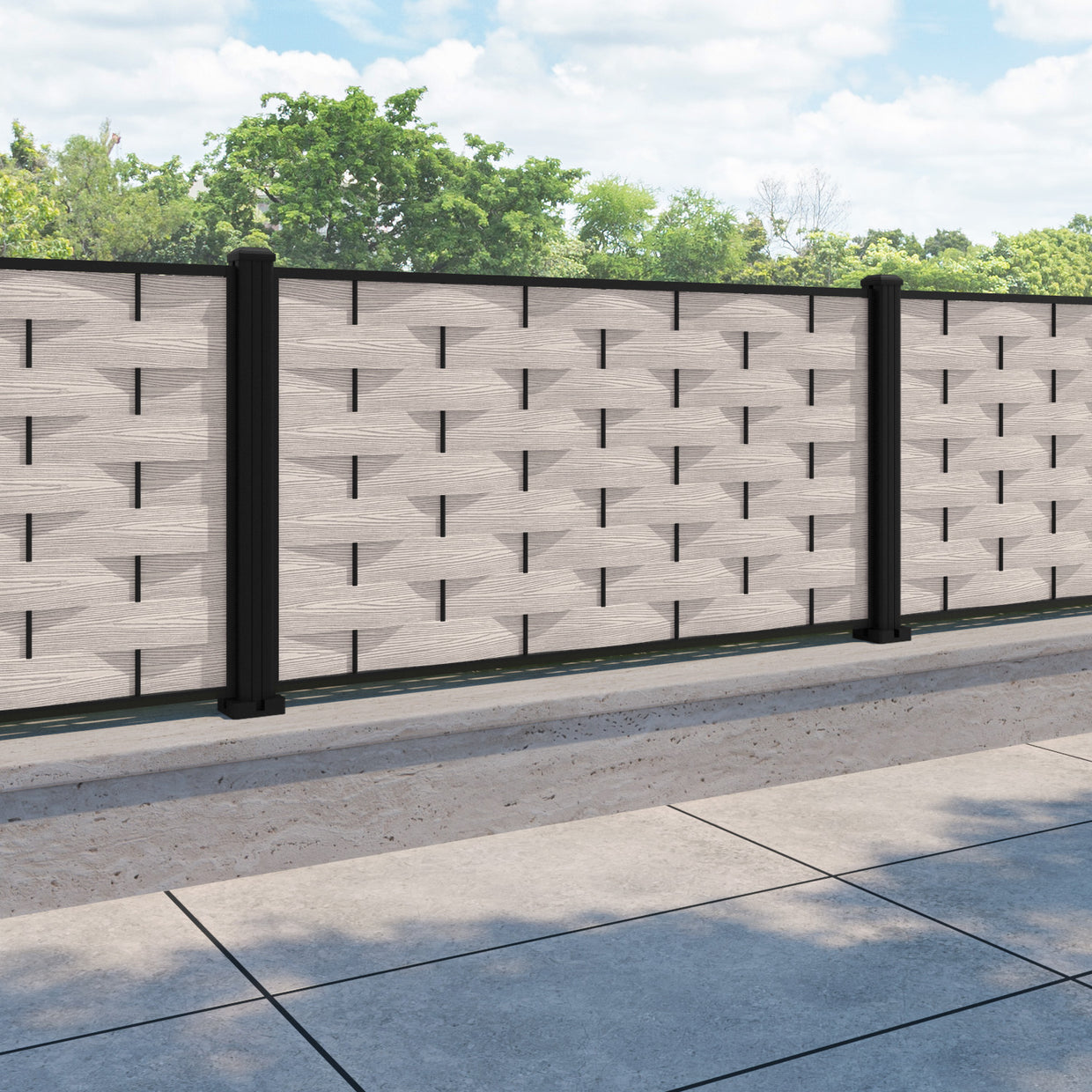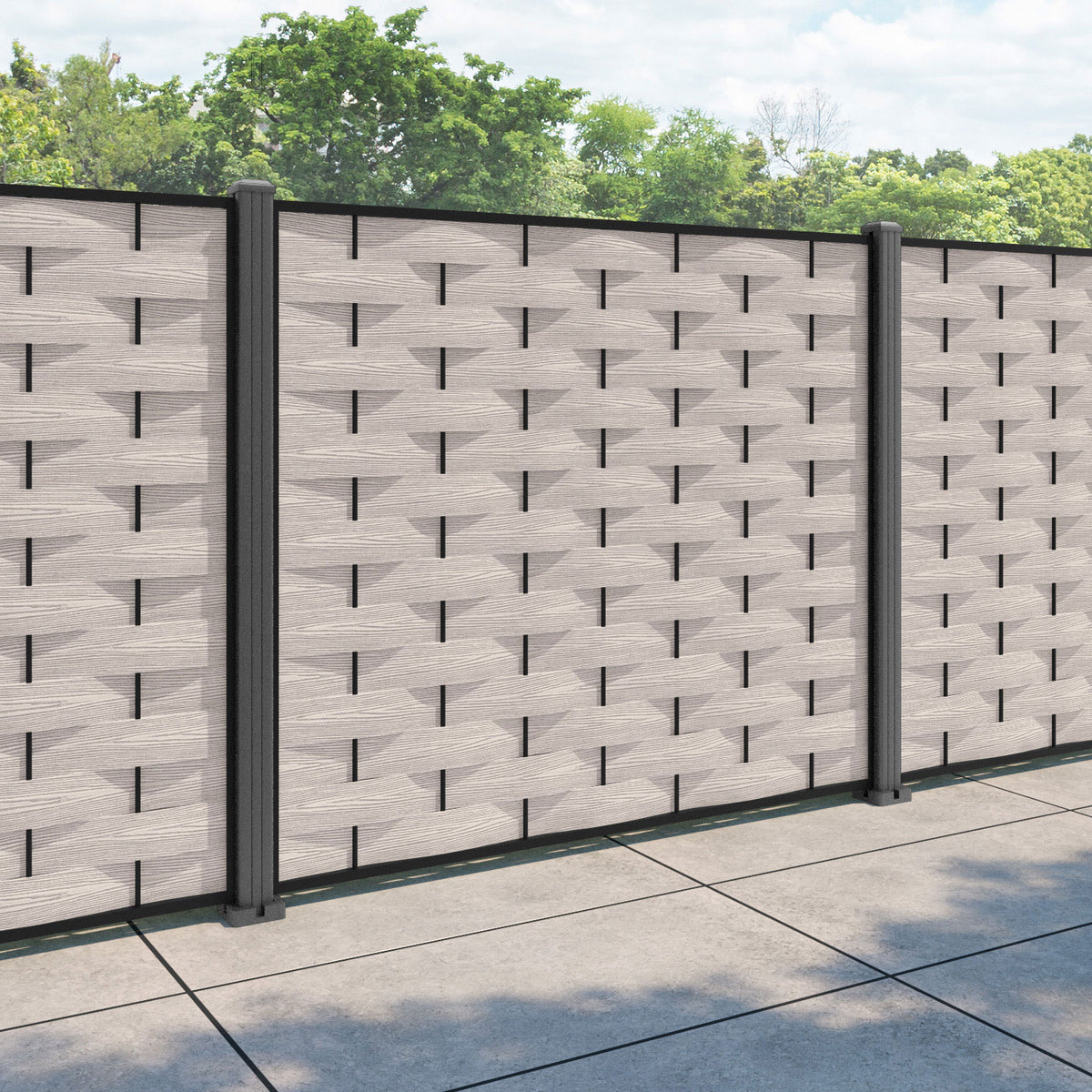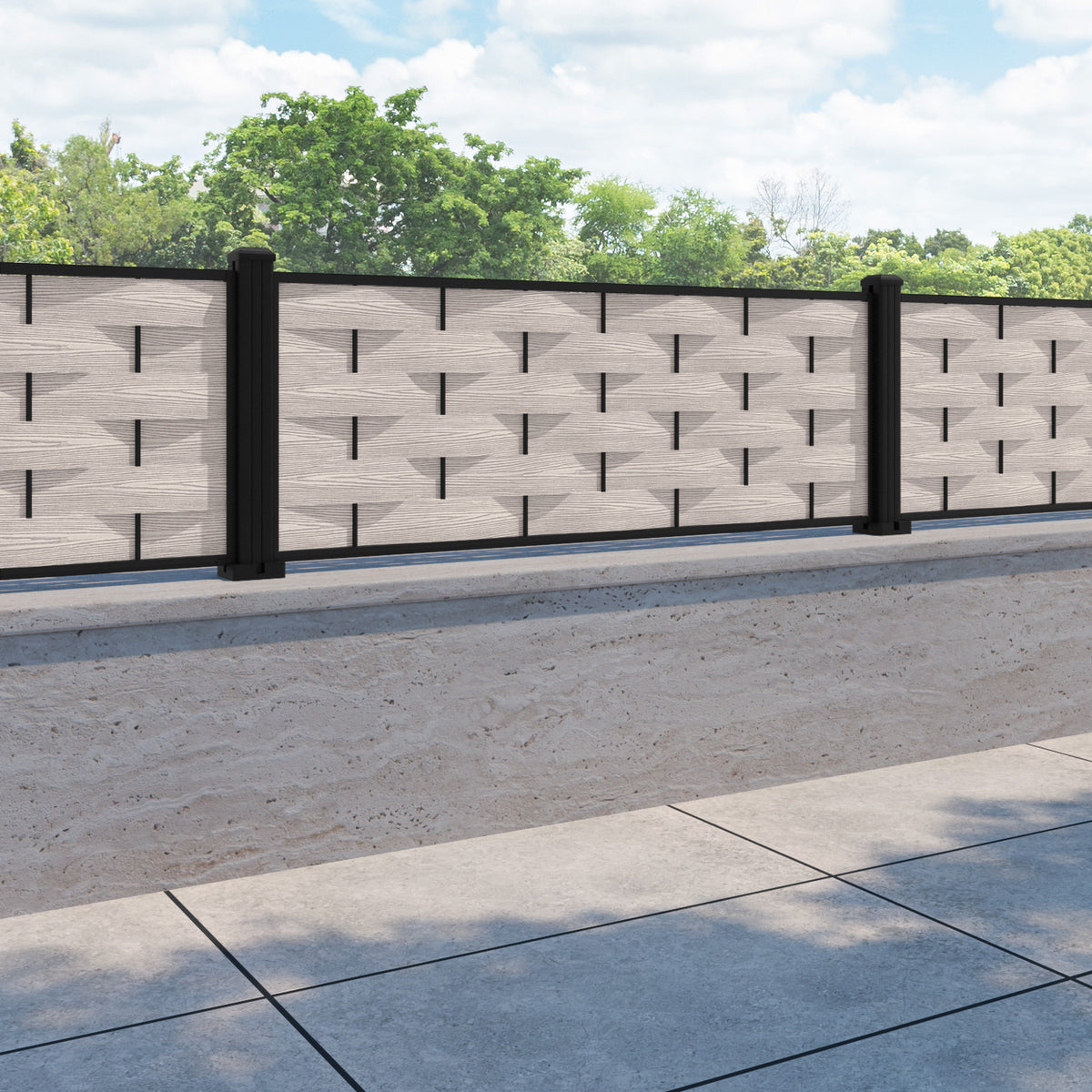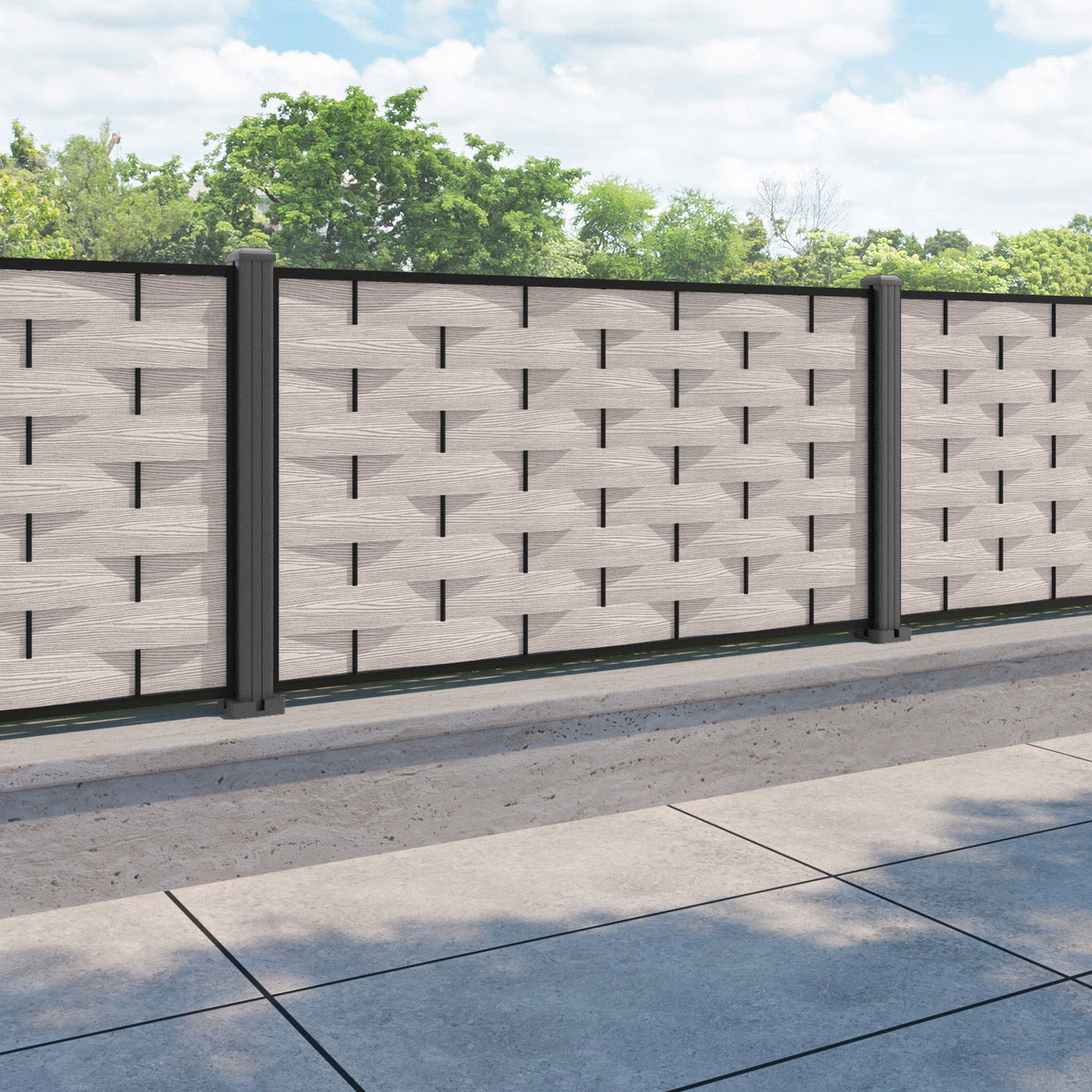 Ripple Fence Panel Mid Stone - with our aluminium posts