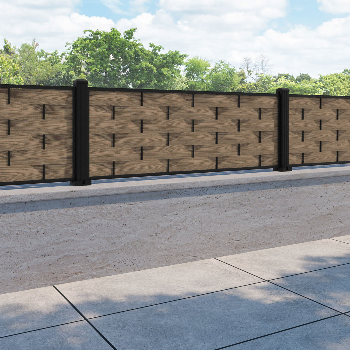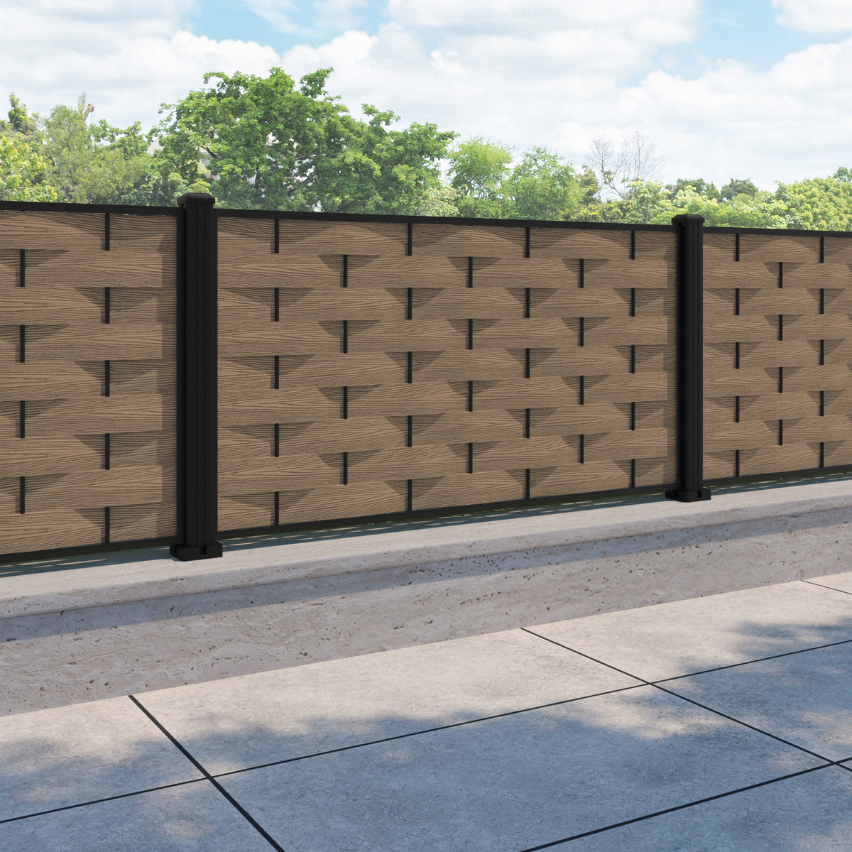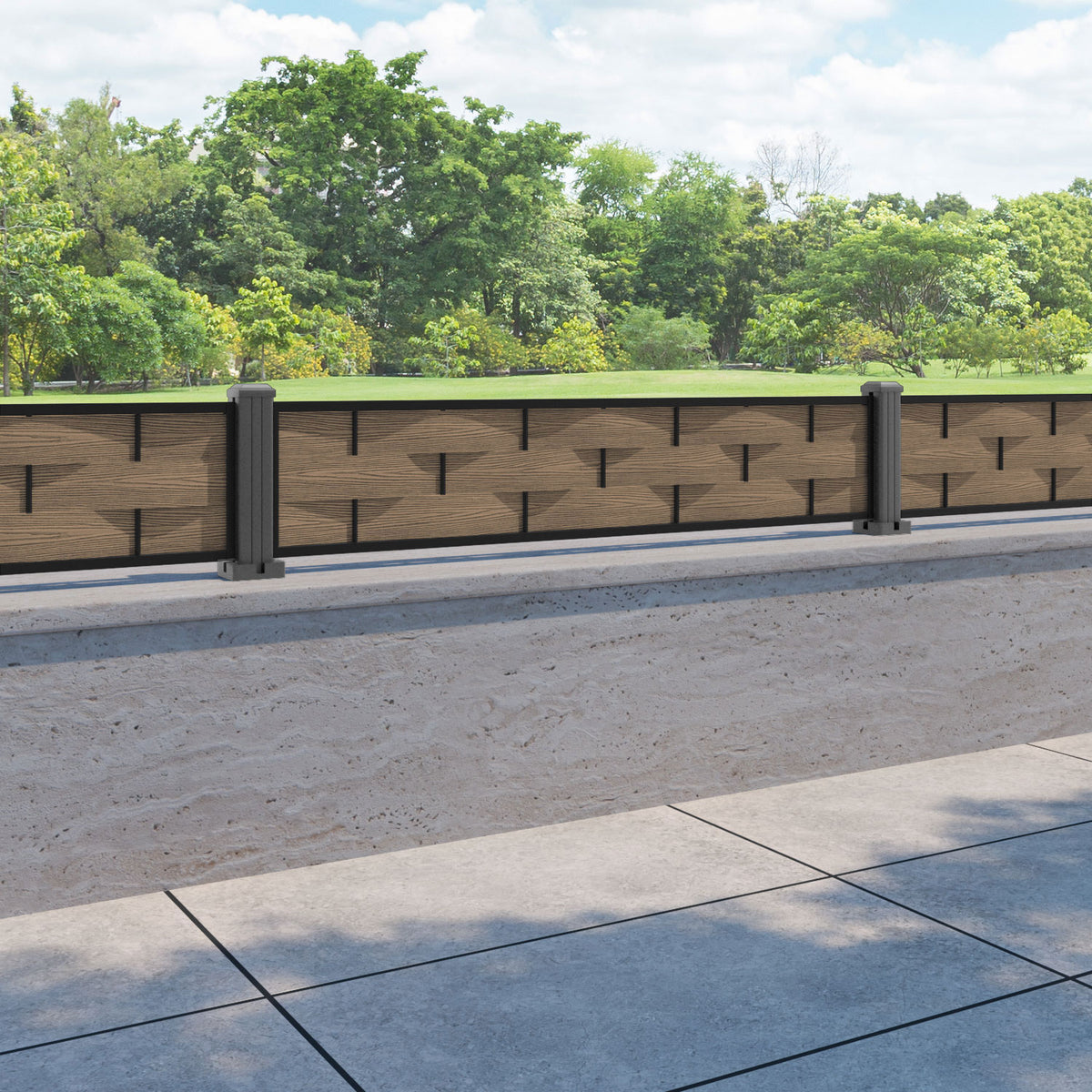 Ripple Fence Panel Teak - with our aluminium posts