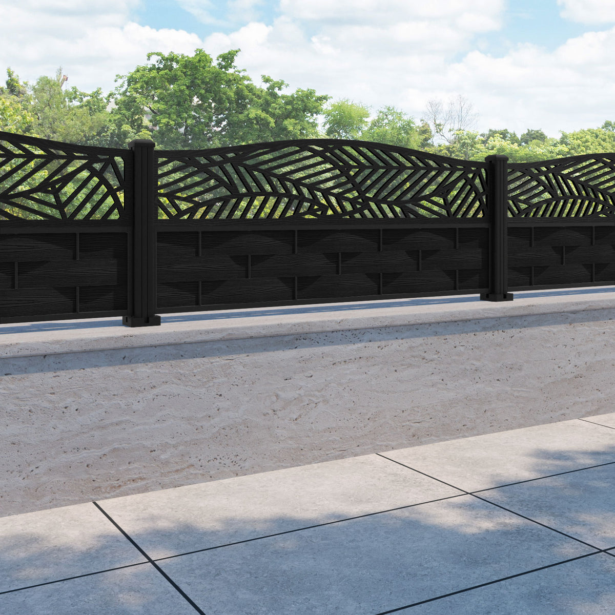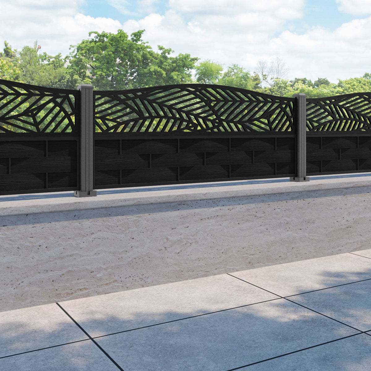 Ripple Habitat Curved Top Fence Panel Black - with our aluminium posts
